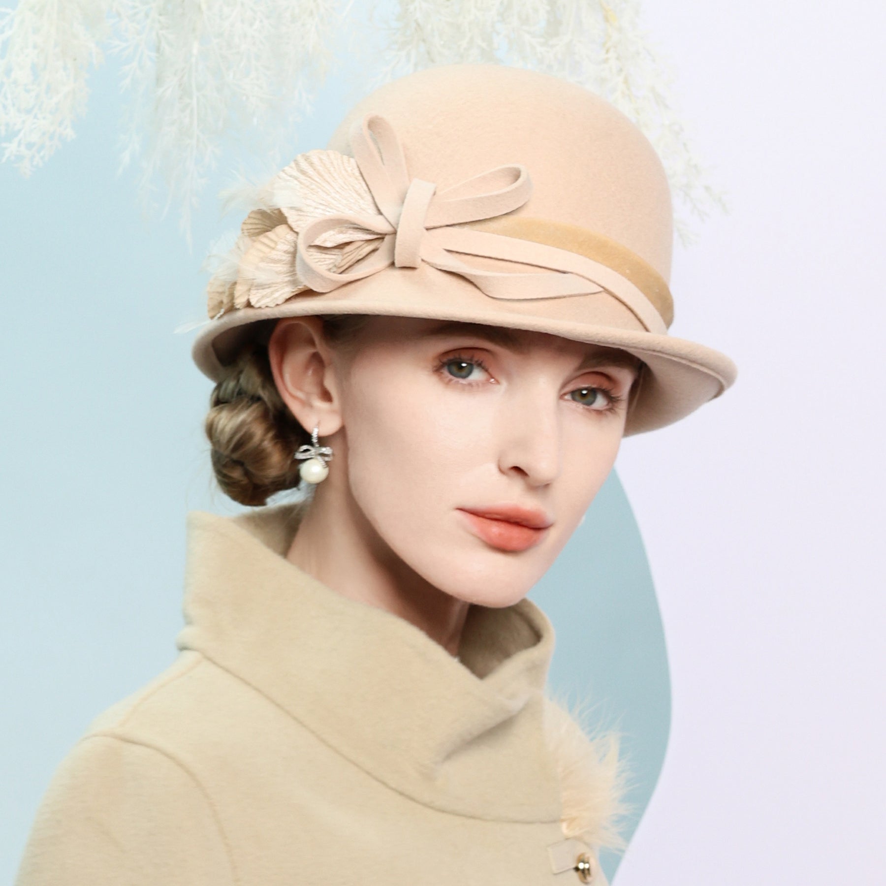 Women’s Elegant Winter Wool Cocktail Wedding Guest Cloche Hats With Beading Silkabaca
