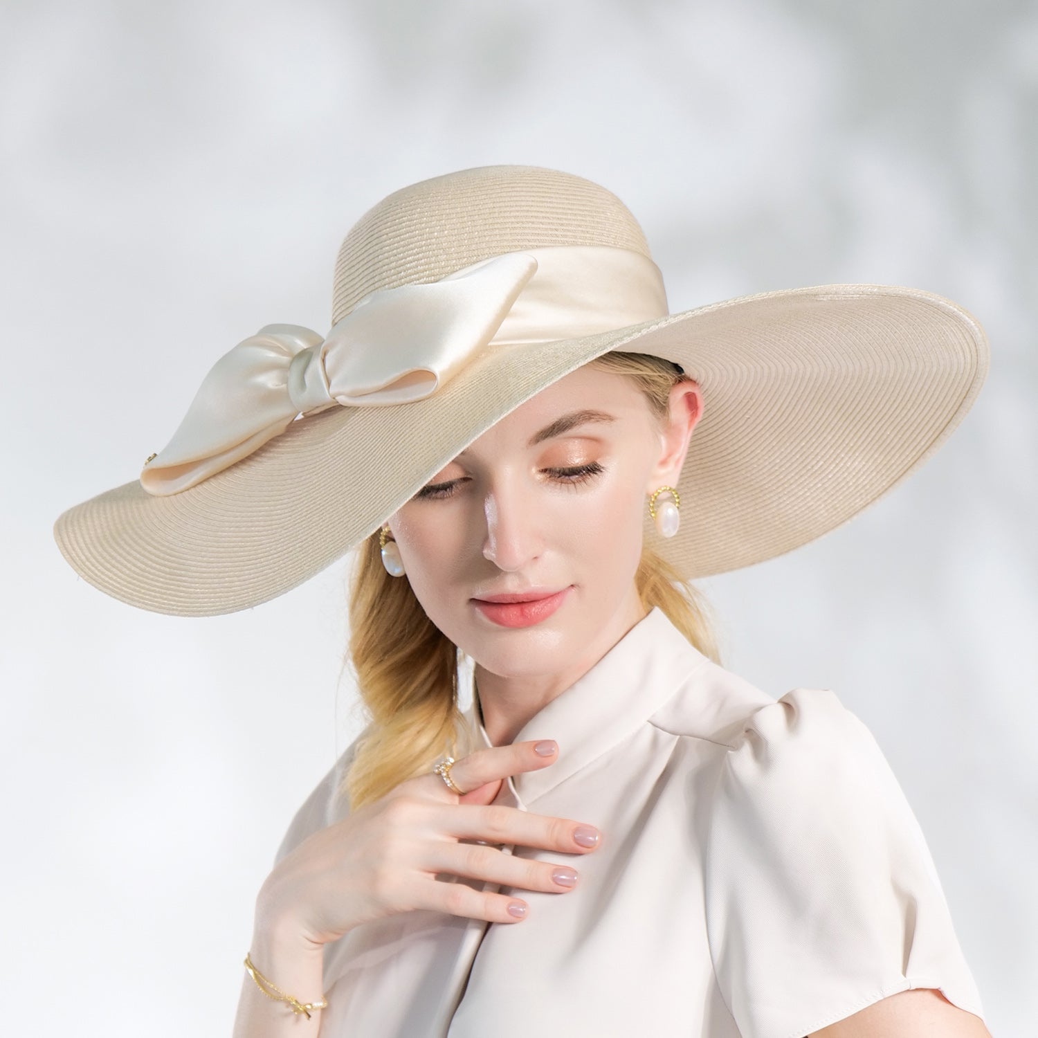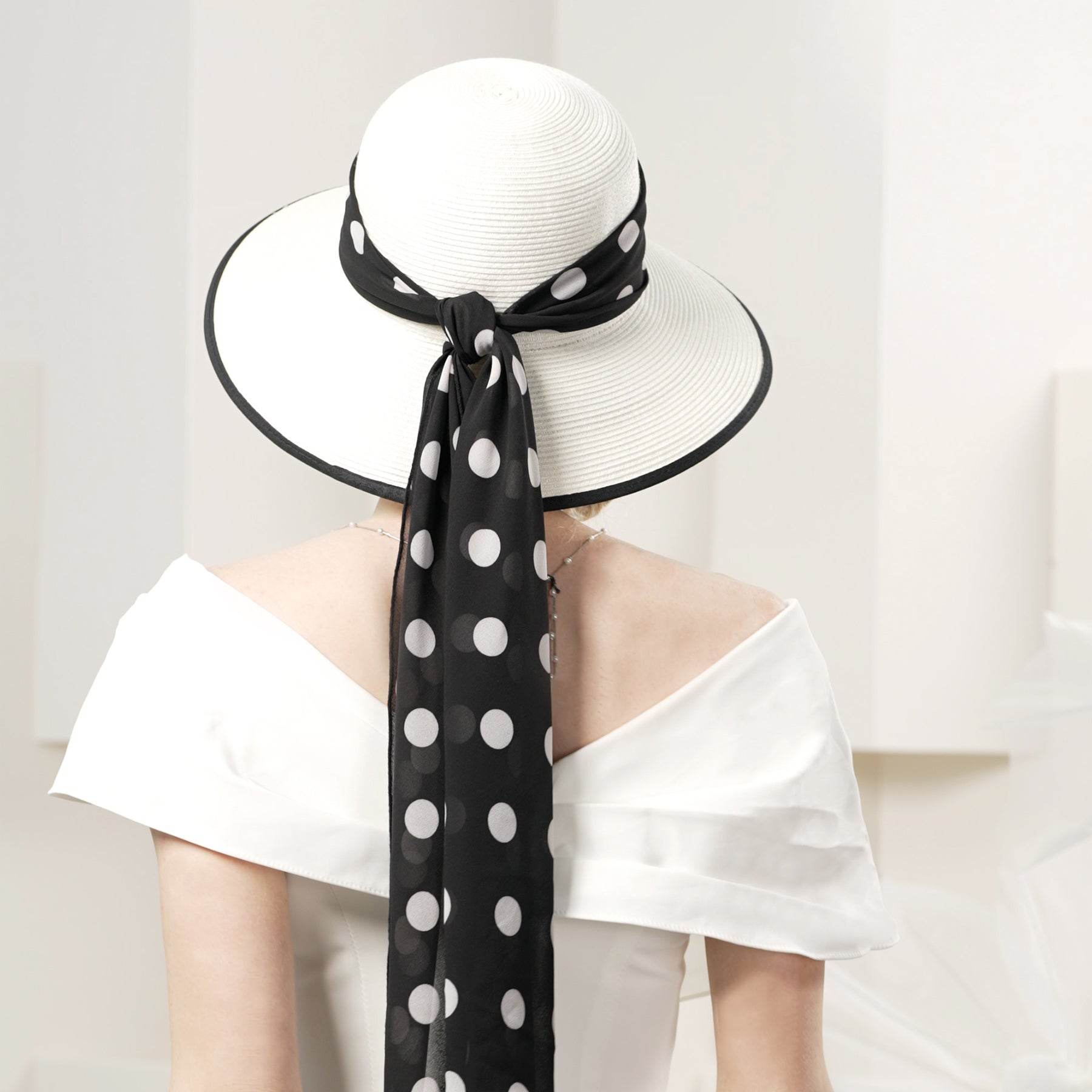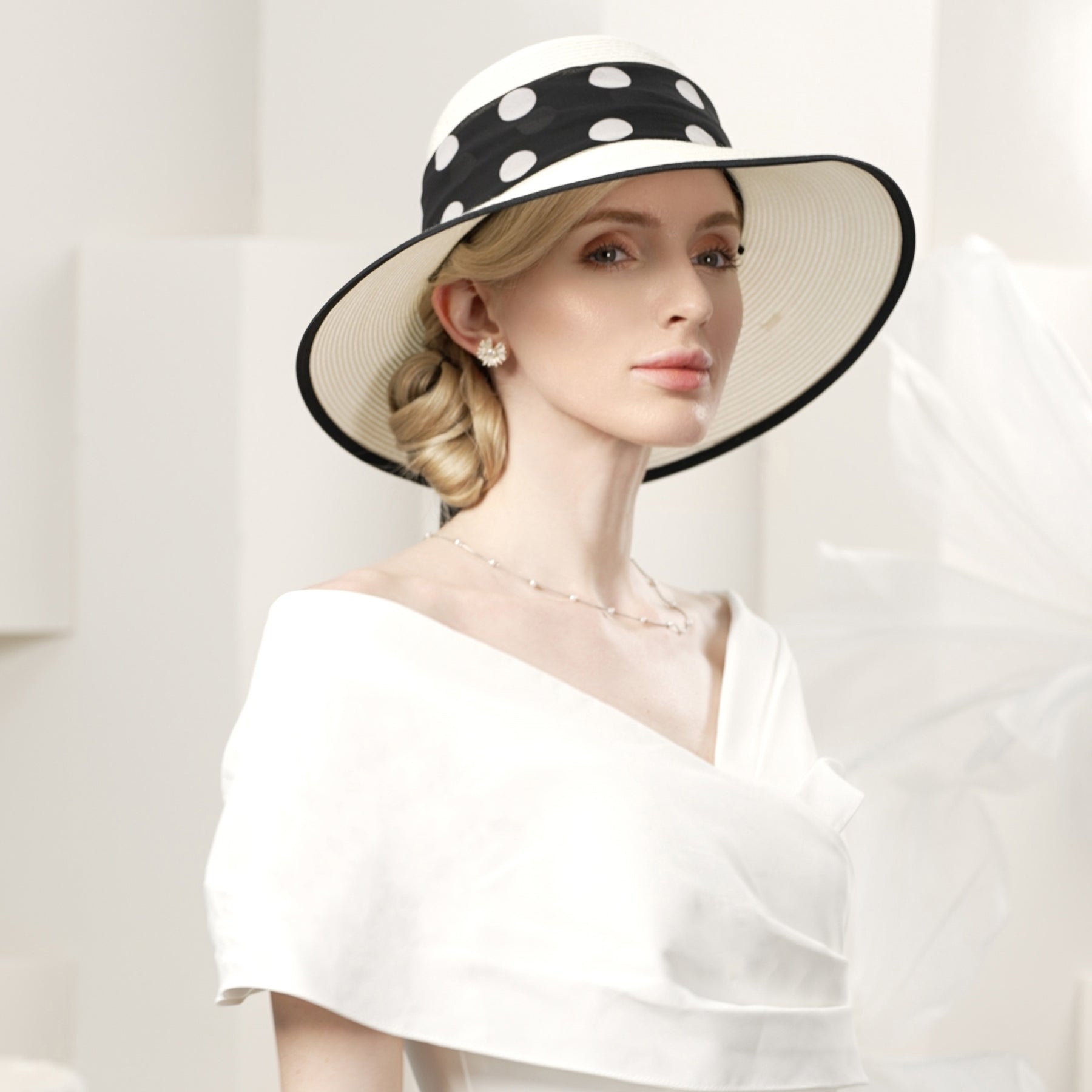 Beige Polka Dot Sash Summer Straw Floppy Sun Hat