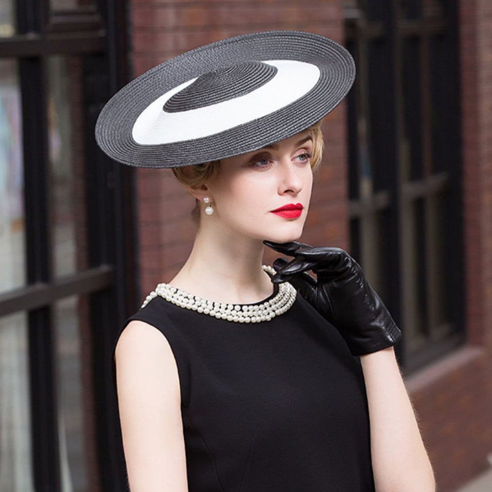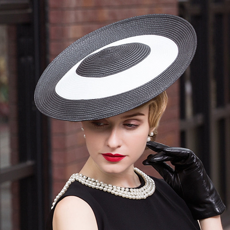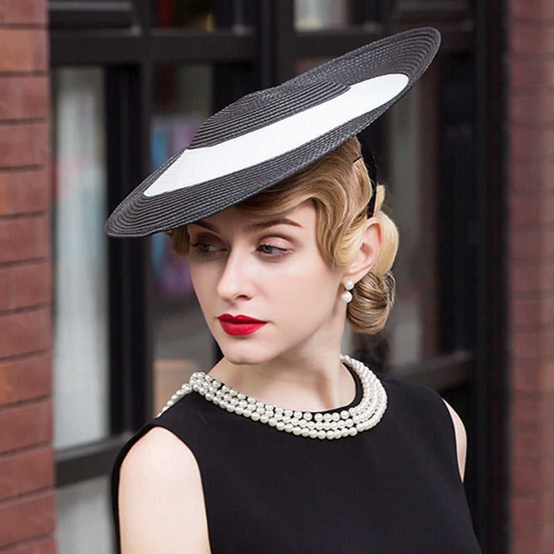 Black & White Straw Kentucky Derby Fascinator Disc Headband