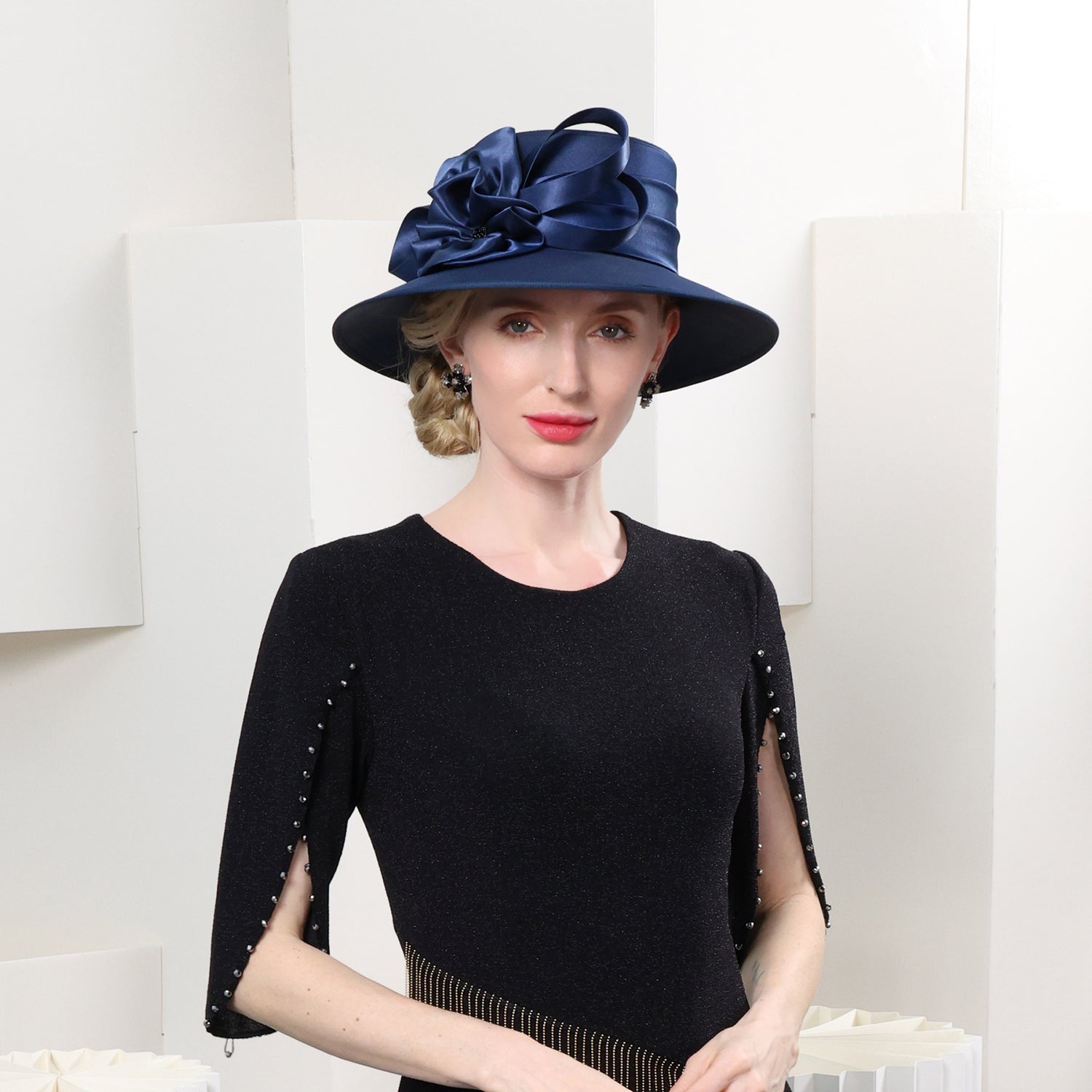 This hat combines elegance and functionality. Its high – quality satin construction and intricate decorative elements make it a standout piece for formal occasions. The adjustable fit ensures comfort, and the wide brim provides sun protection.