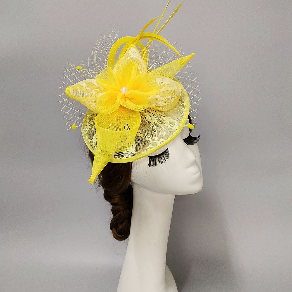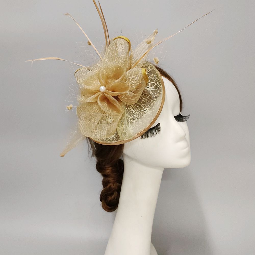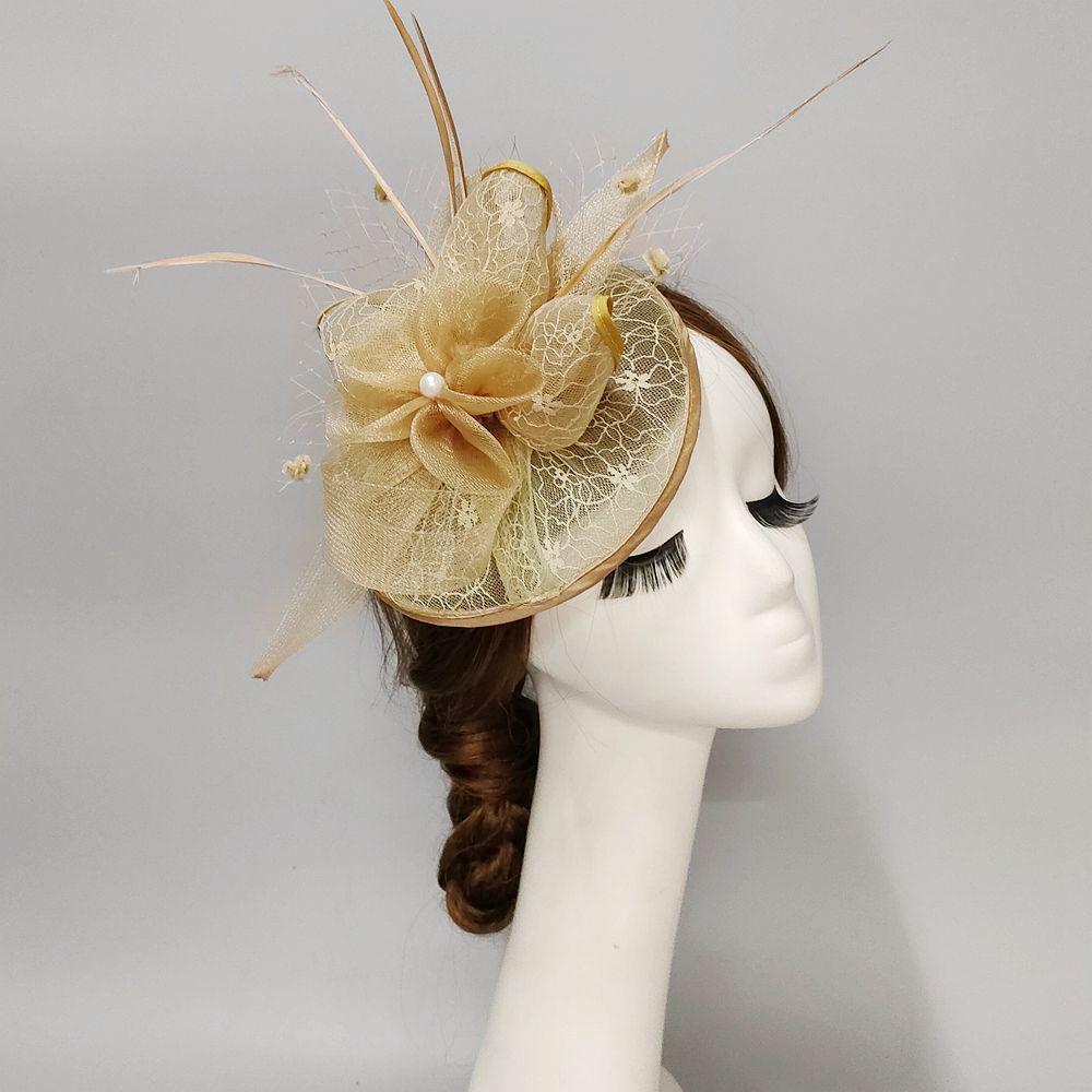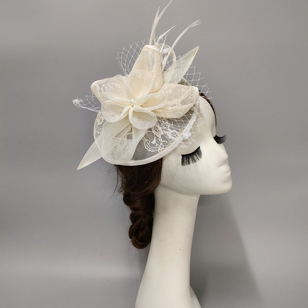 | Material | Synthetic fabrics (polyester/nylon), lace, millinery feathers, pearl |