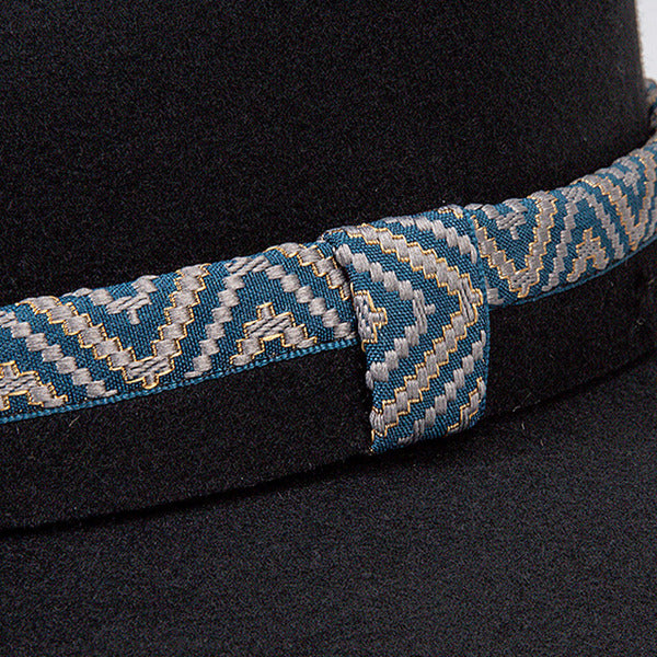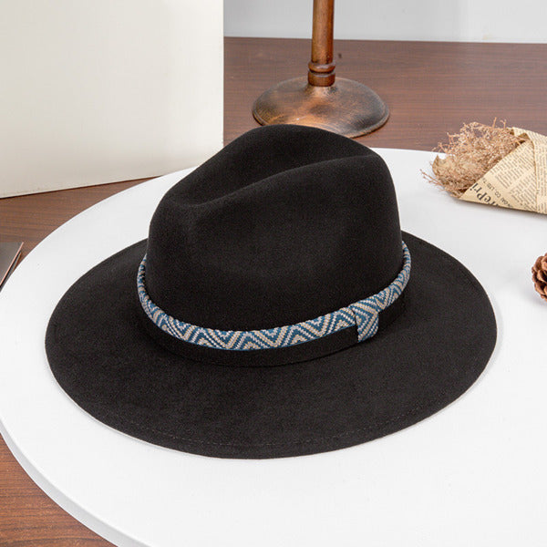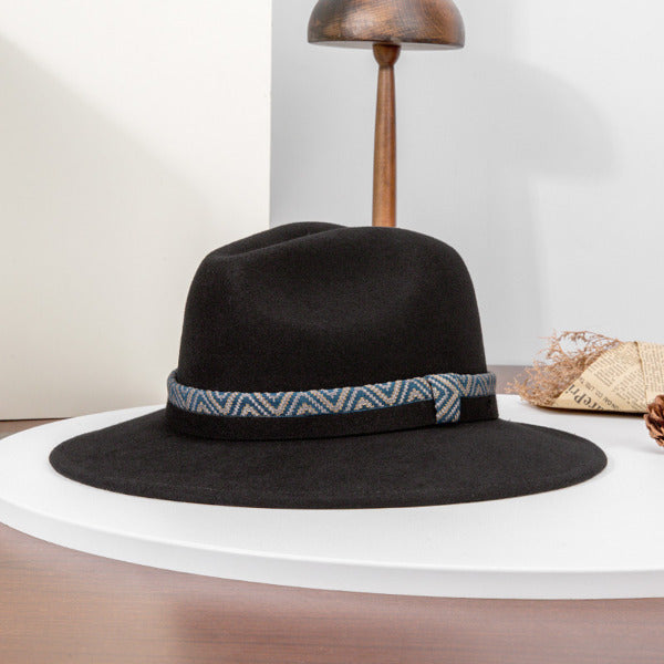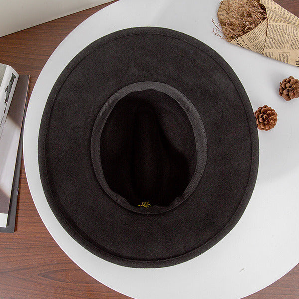 Flat Brim Winter Band Wool Wedding Fedora Hats – Black