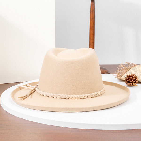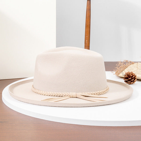 Step into style with this classic fedora hat. Crafted from a likely wool-felt or wool-acrylic blend, it boasts a smooth, matte finish. The light tan/beige solid base color is complemented by a beige braided band and a subtle brown decorative tassel/bow, offering a cohesive and contemporary look suitable for everyday or semi – formal occasions.