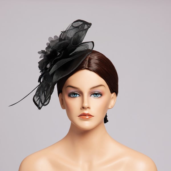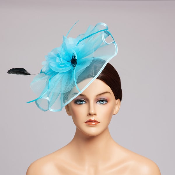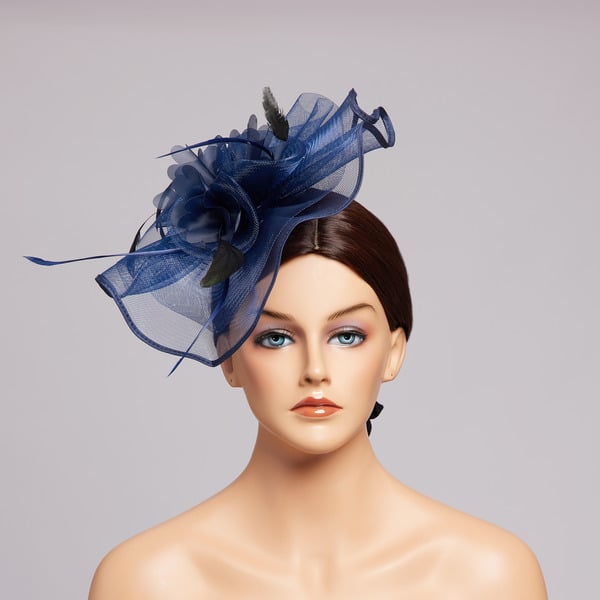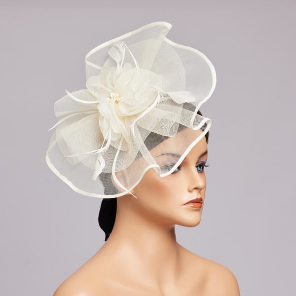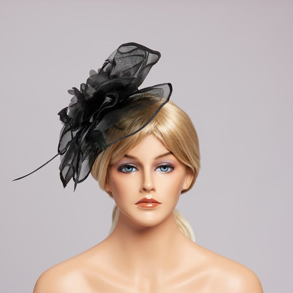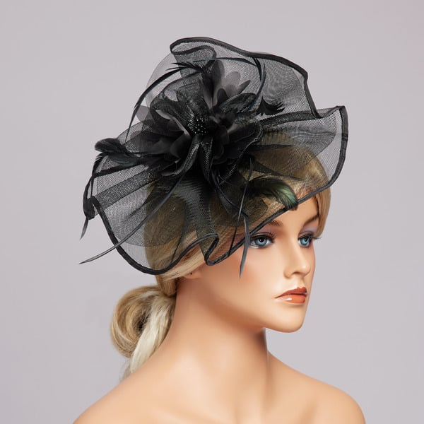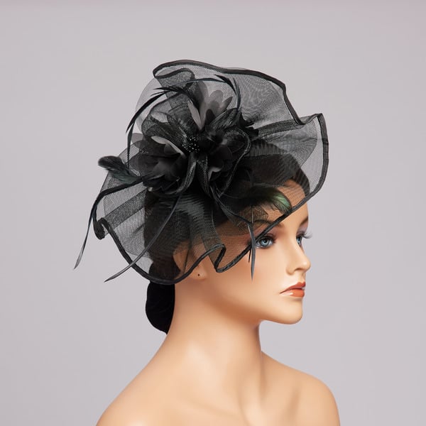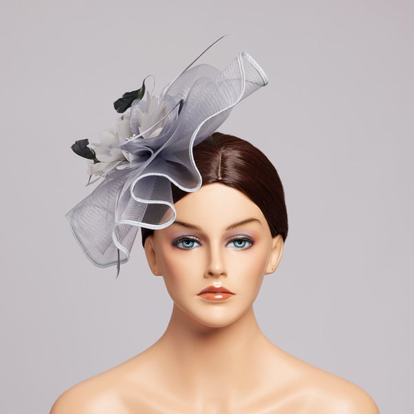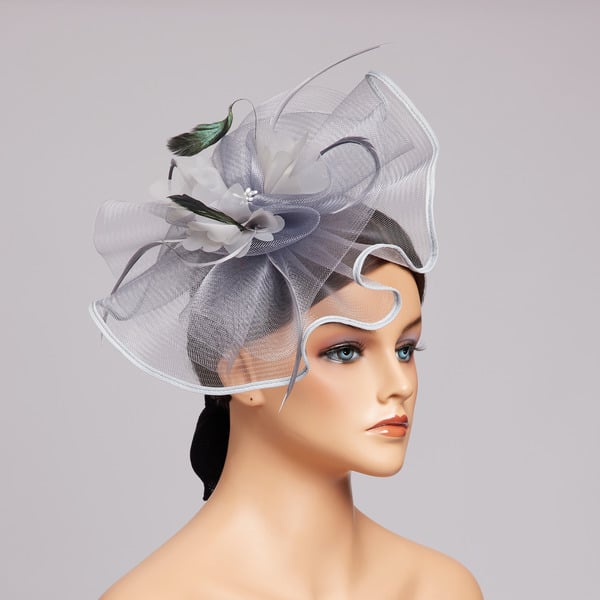 Mesh With Faux Feather Flower Kentucky Derby Fascinators With Clip – gray