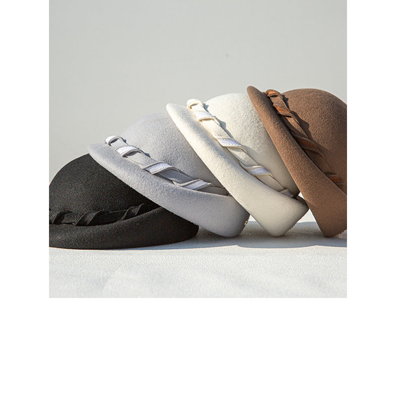 - Material: Felt (likely wool or wool-blend), with a braided woven fabric (possibly cotton or cotton blend) band