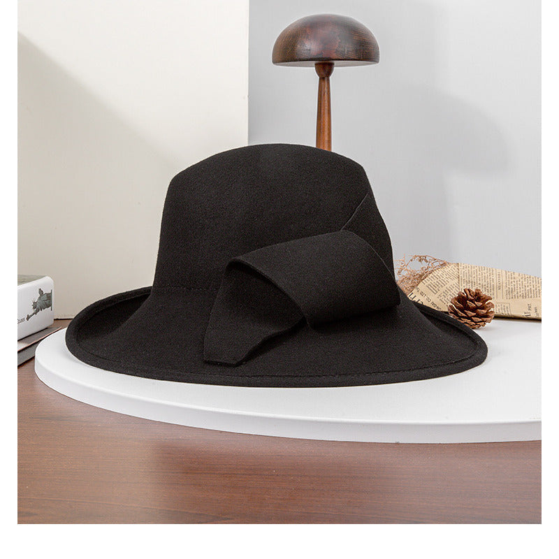 Women Simple Winter Twist Bow Wool Wedding Tea Party Fedora Hats