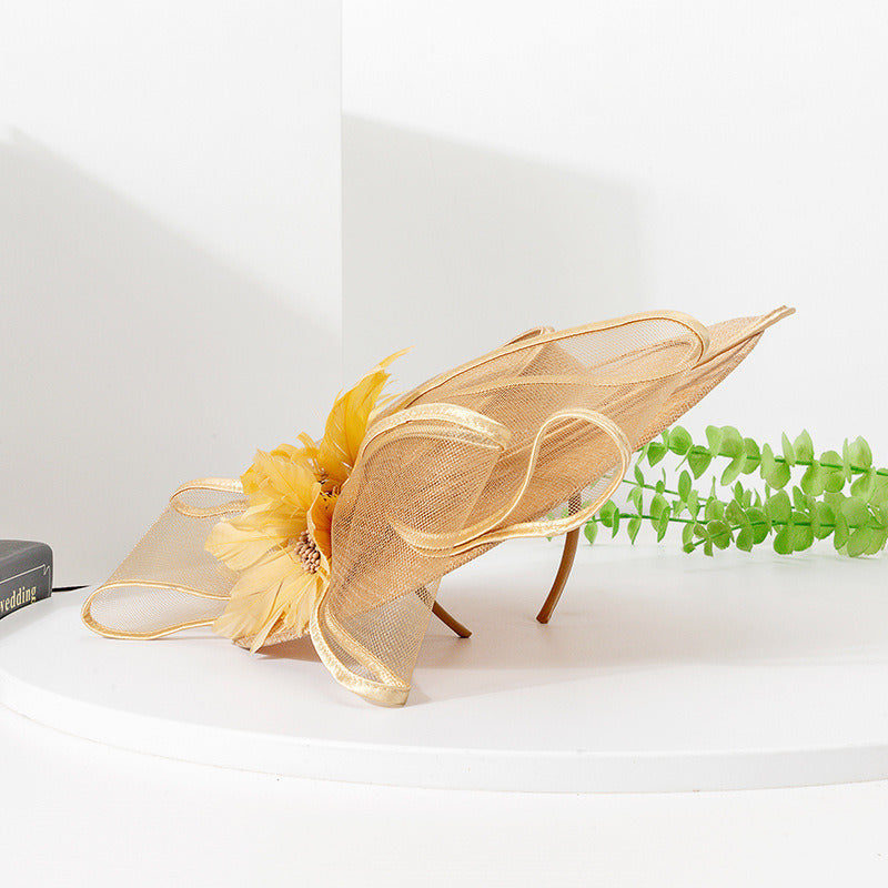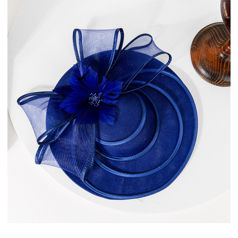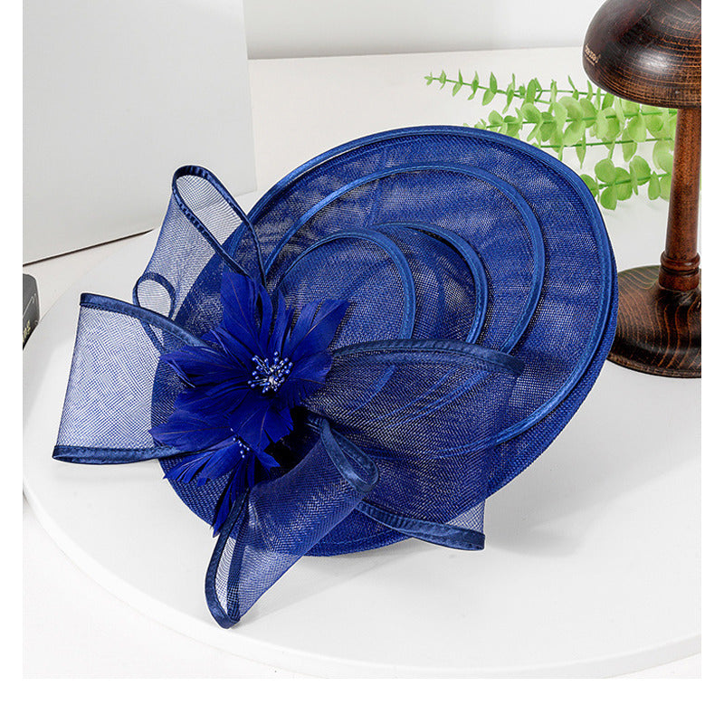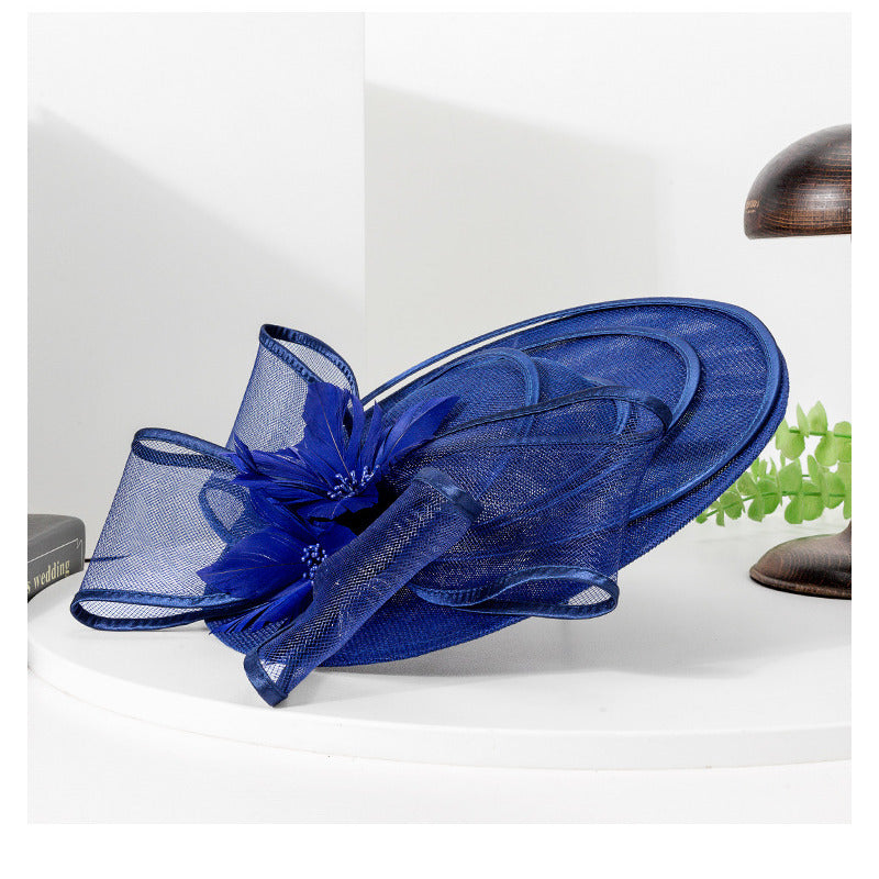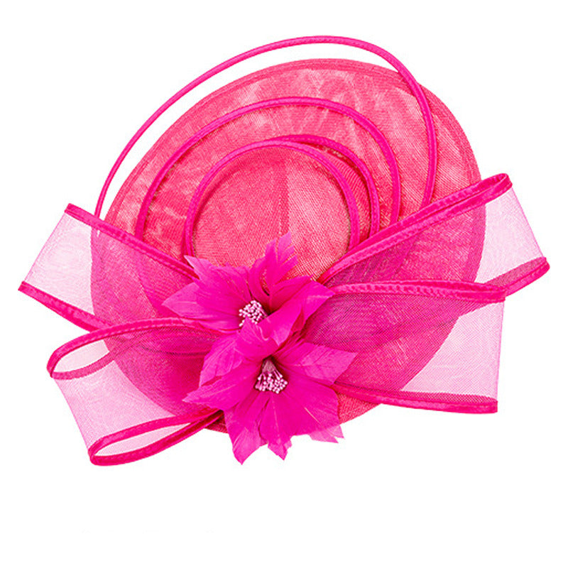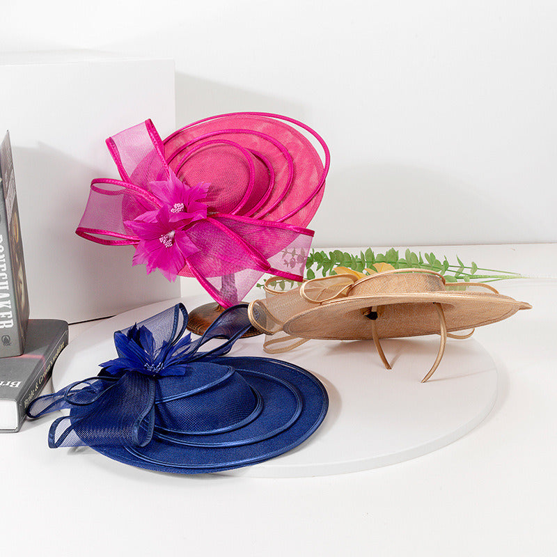 Women Wide Brim Flower Bow Faux Sinamay Wedding Kentucky Derby Fascinators With Headband