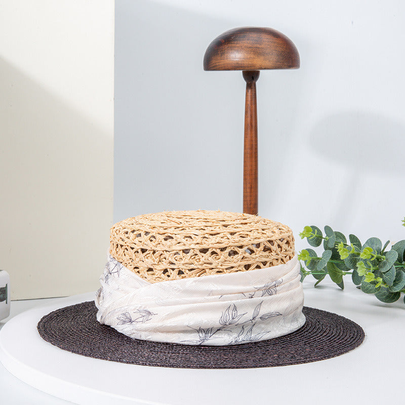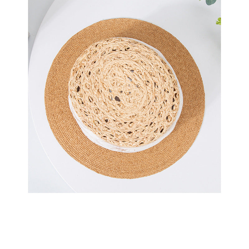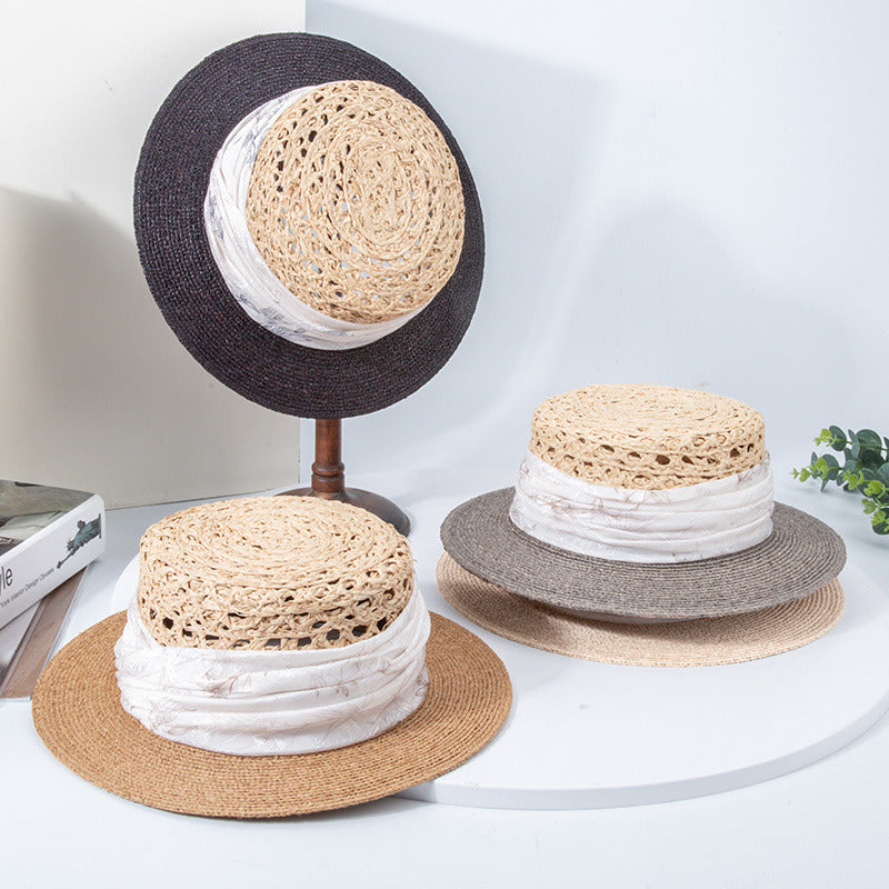 Women’s Boho Flat Brim Summer Ribbons Band Straw Holiday Tea Party