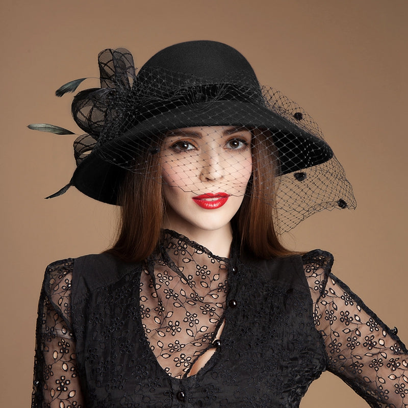 Women’s Classic Faux Feather Casual Wedding Cloche Hats
