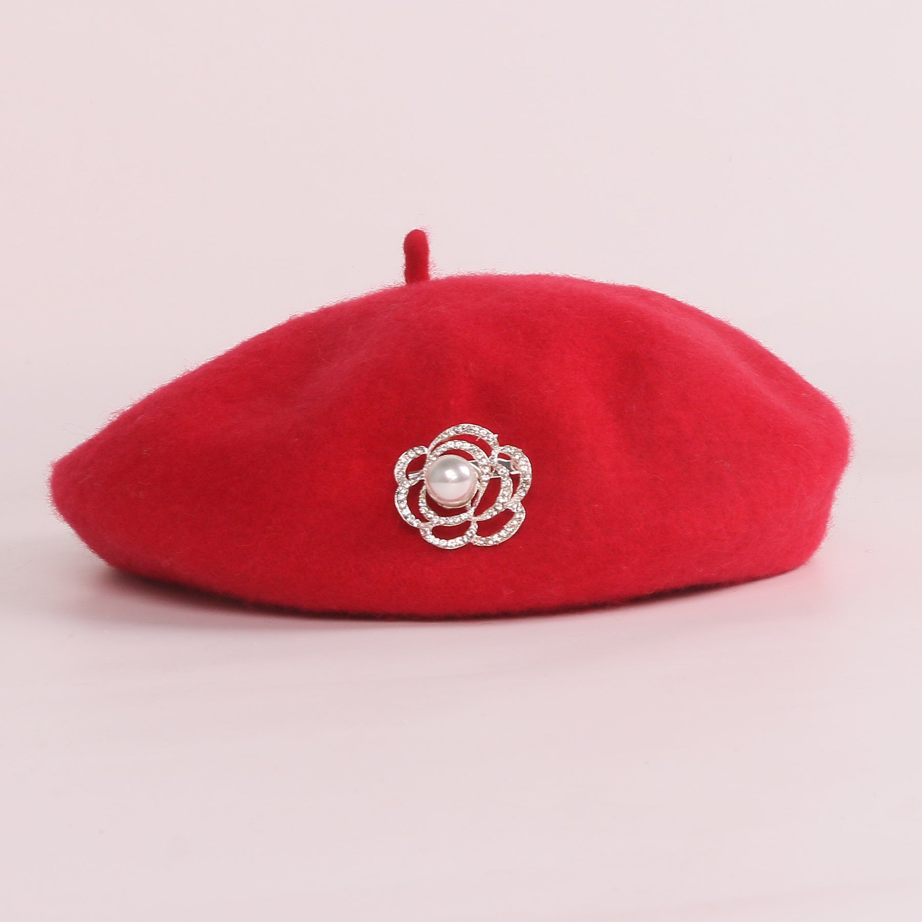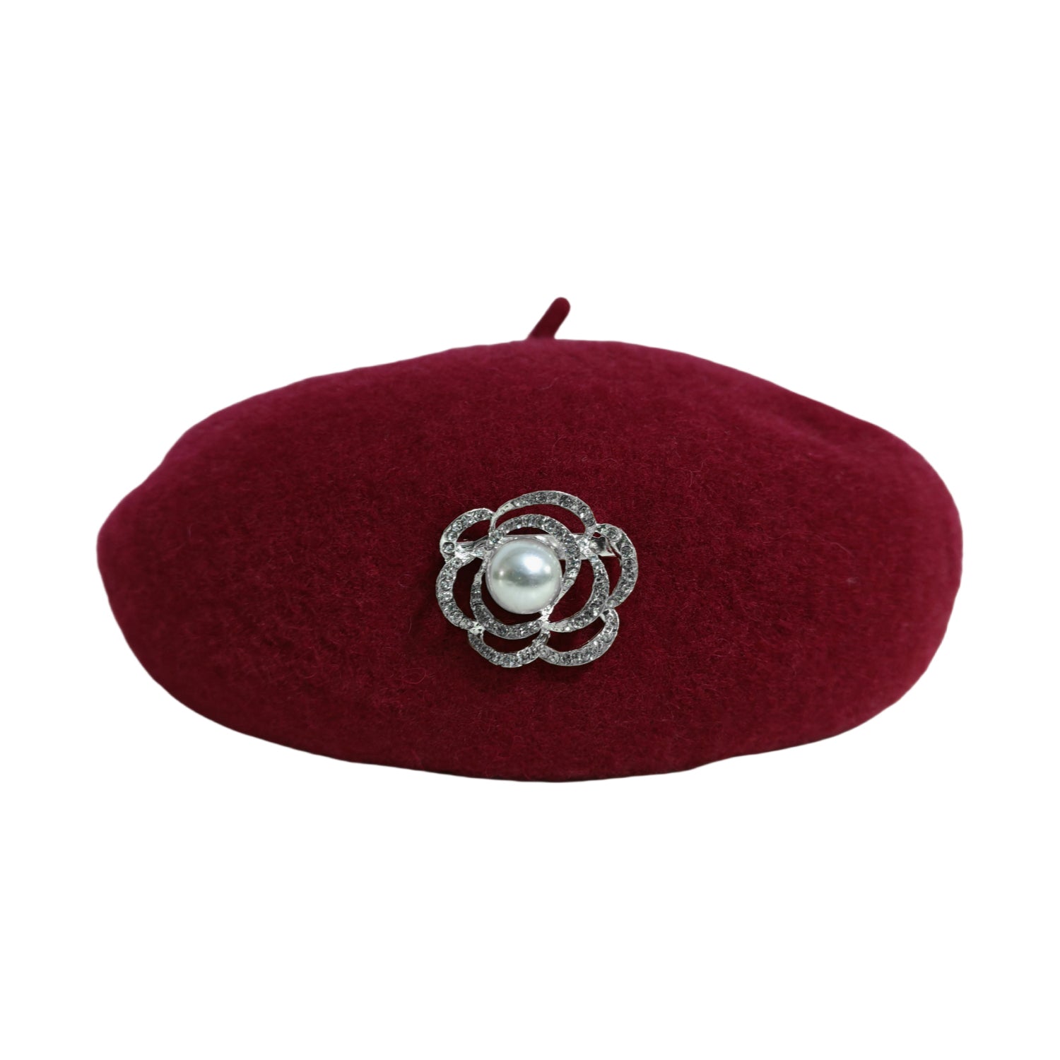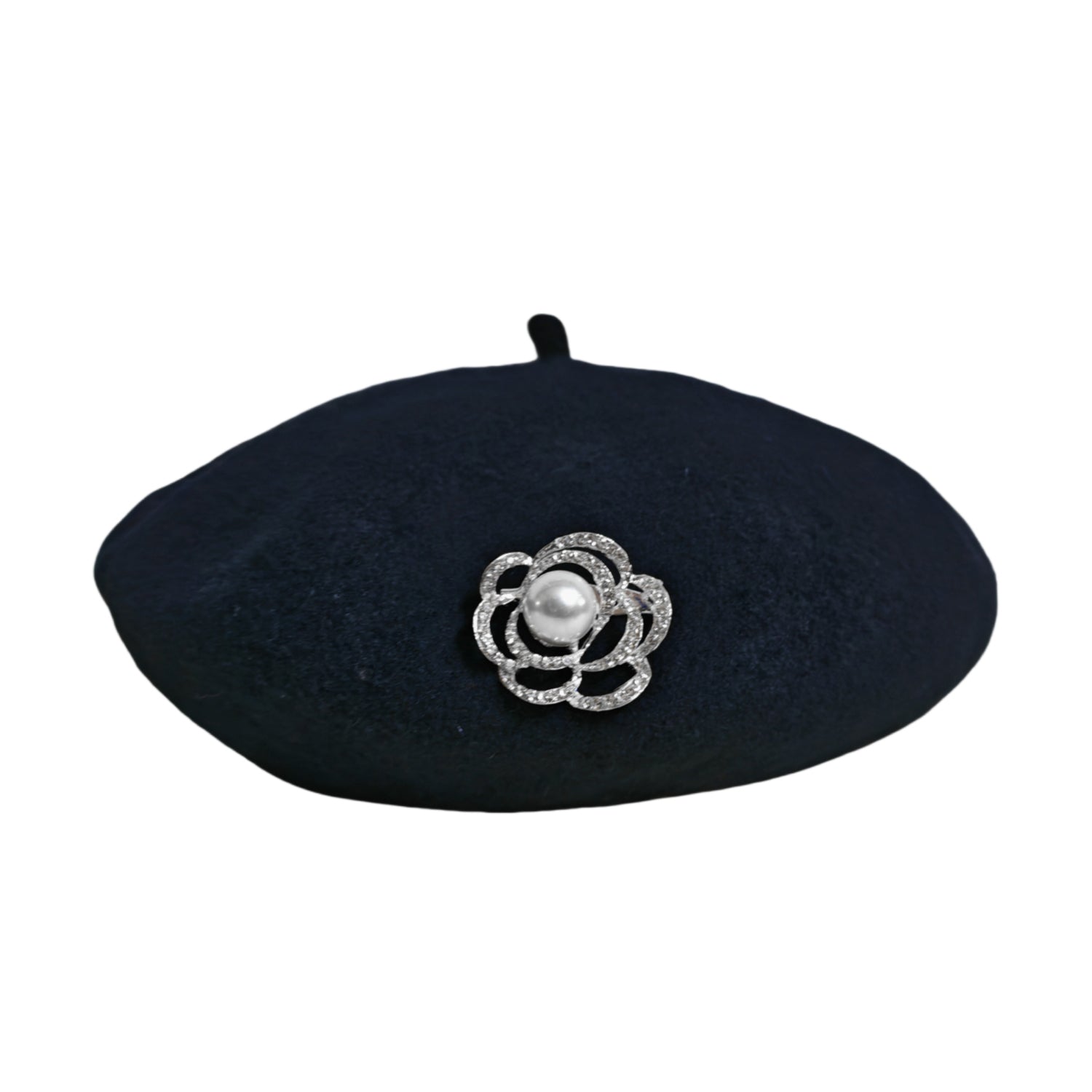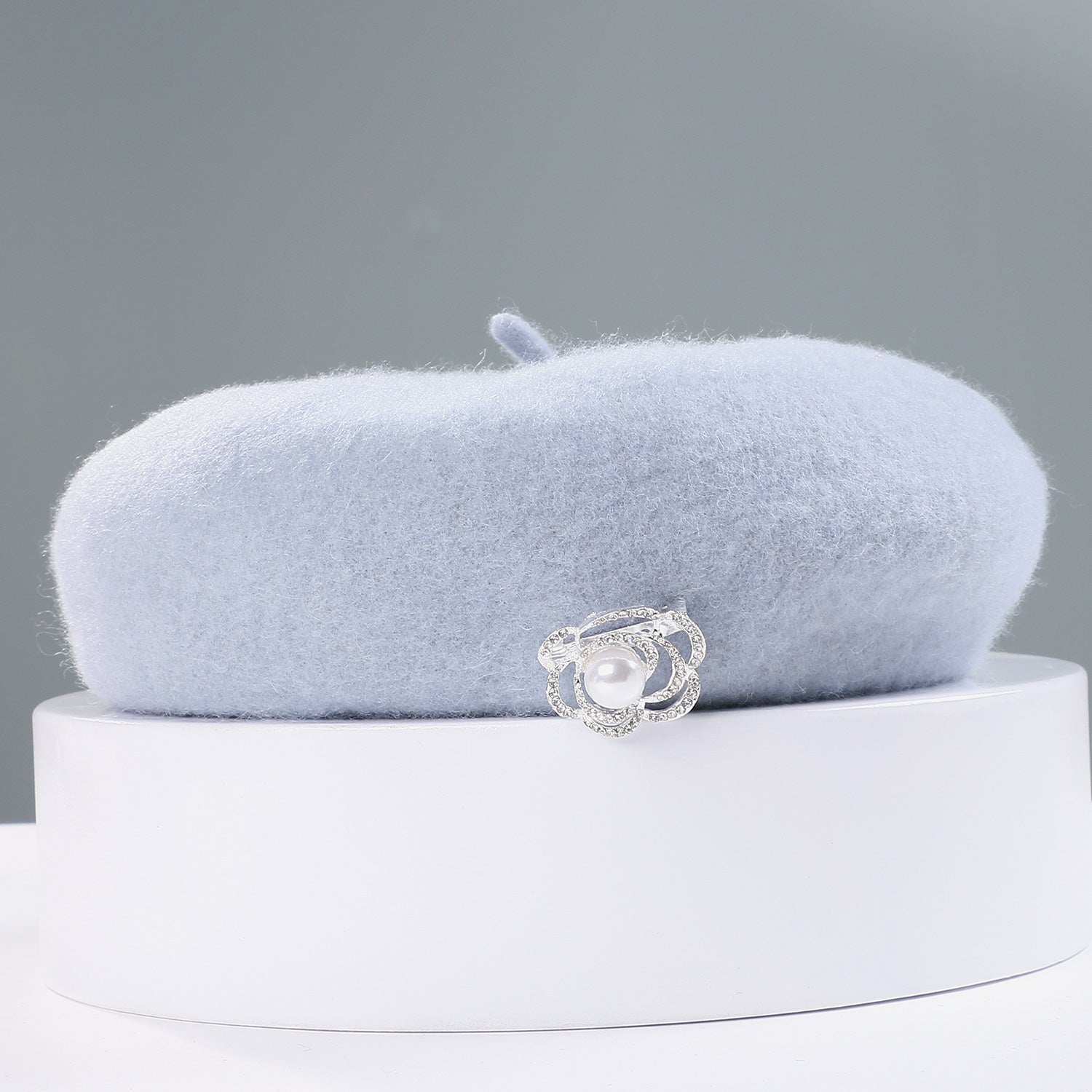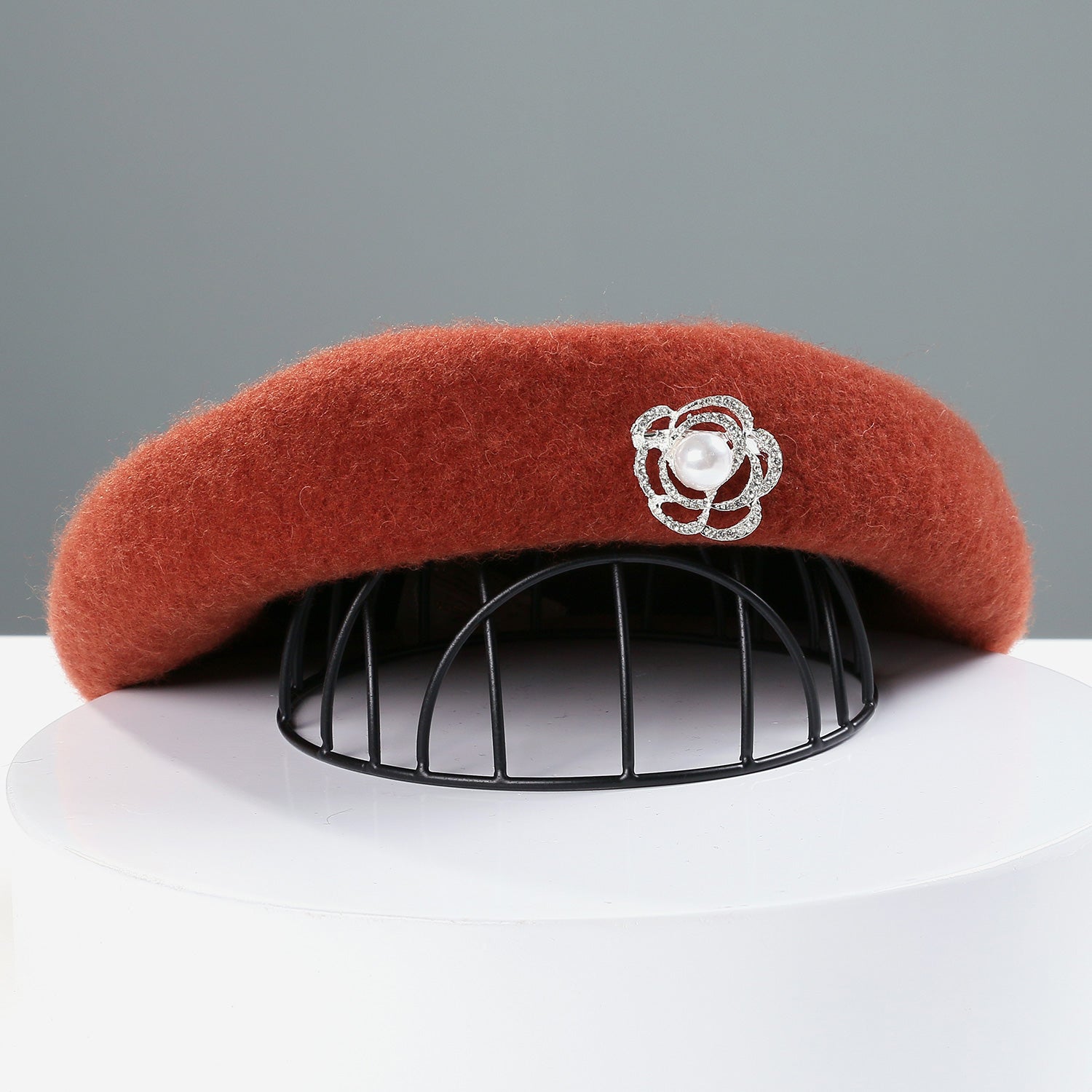 Womens Classic Winter Pearl Rhinestone Flower Wool Wedding Cocktail Beret Hats
