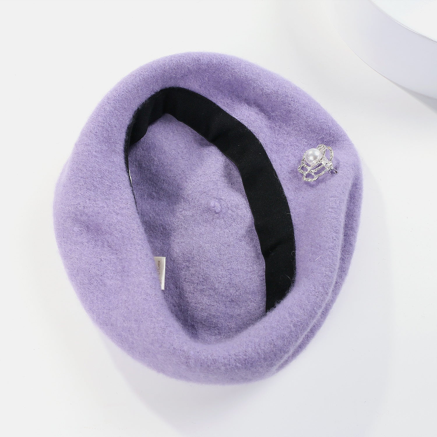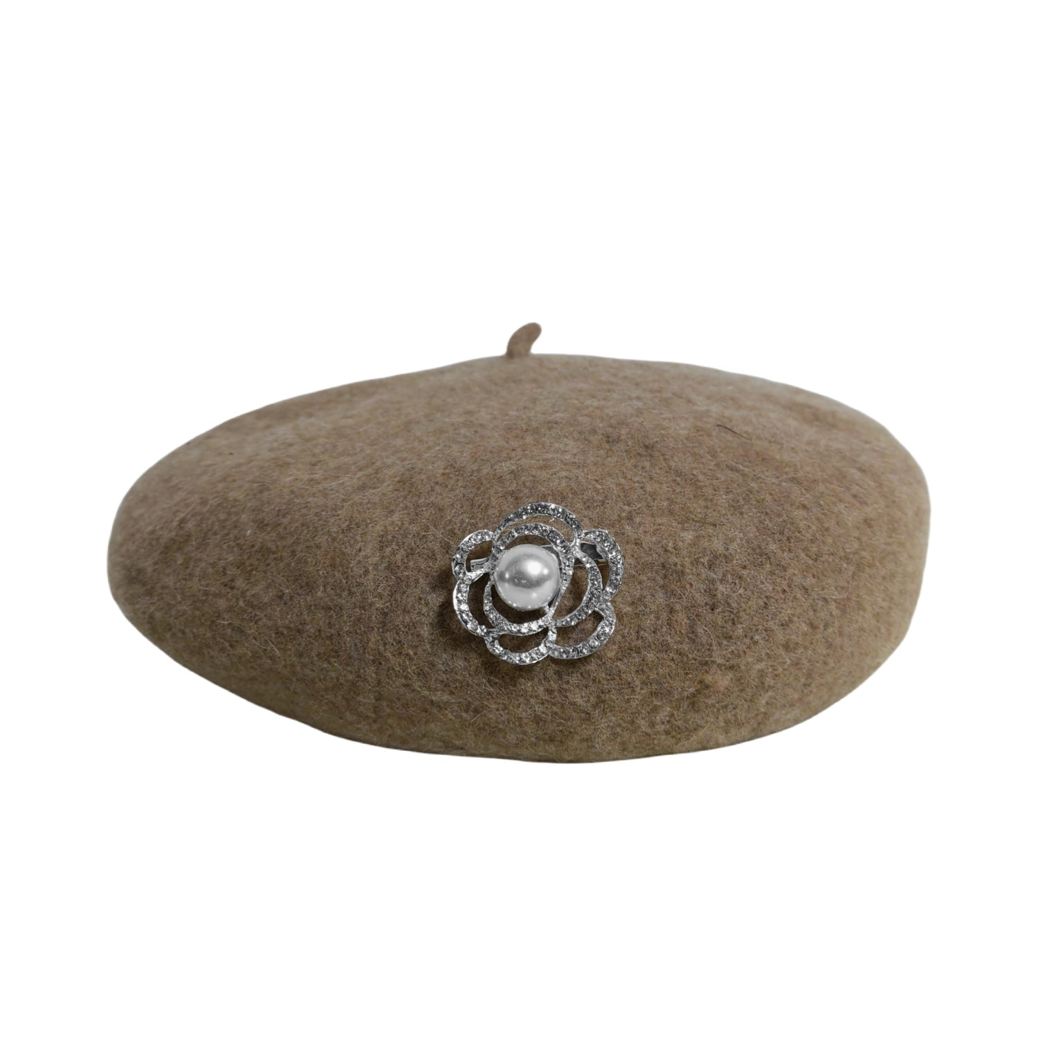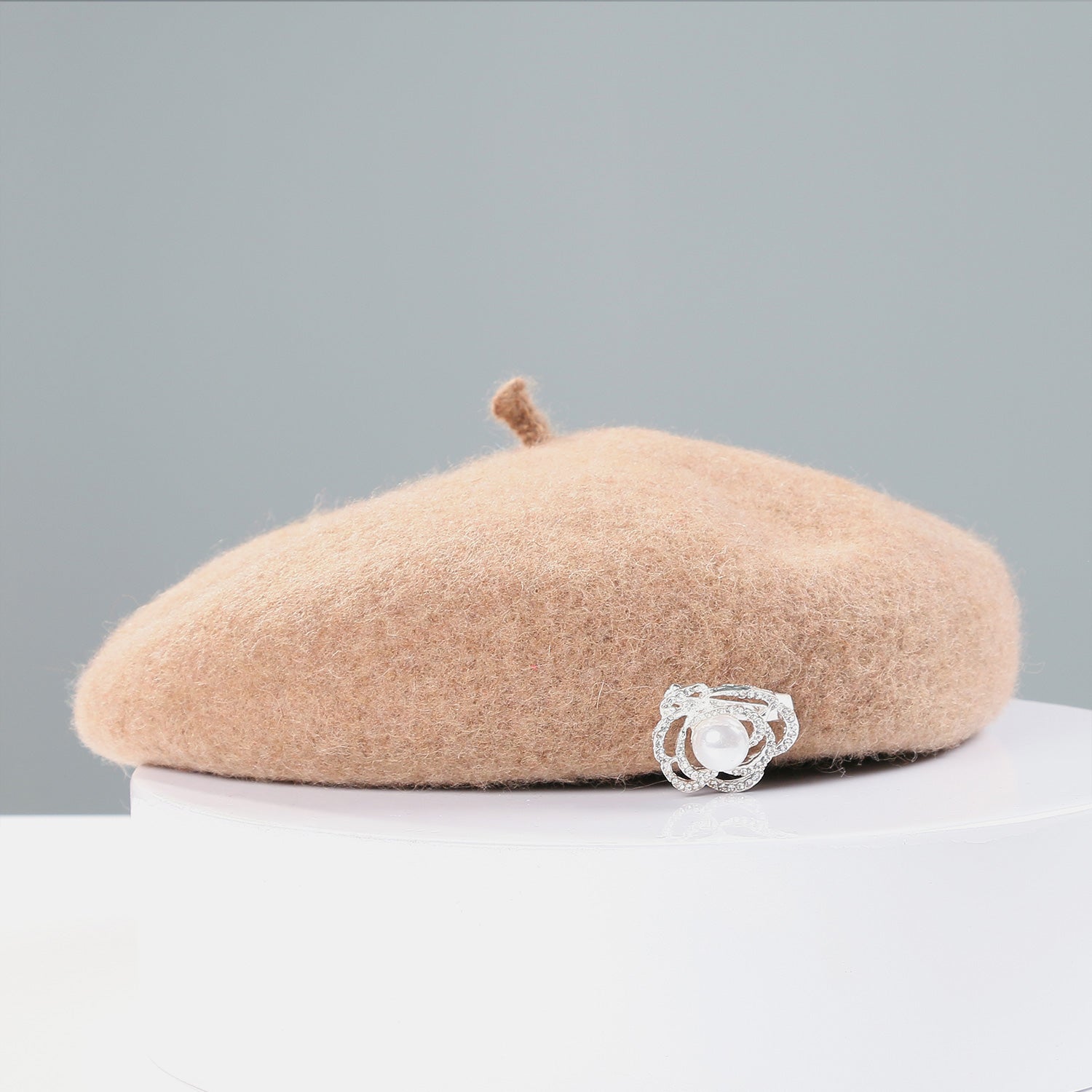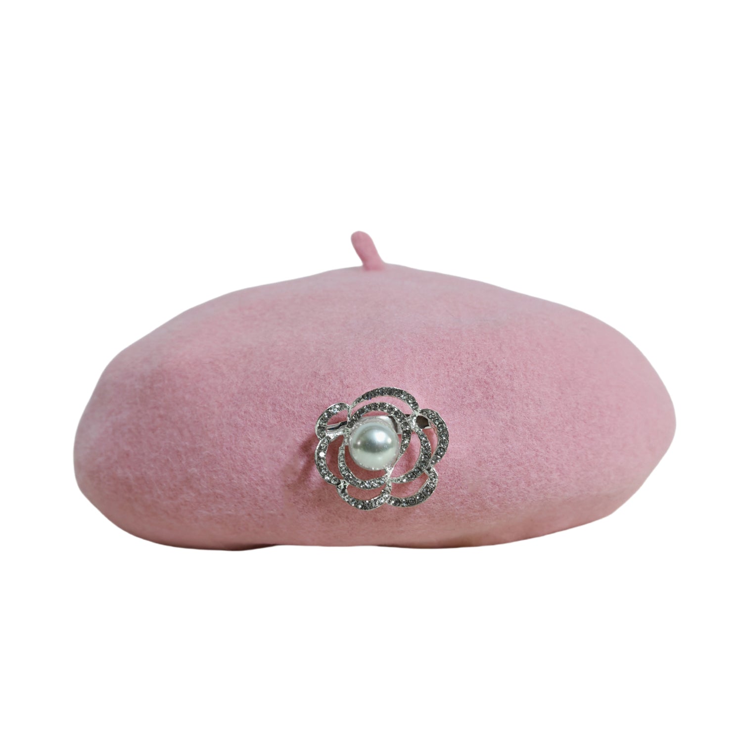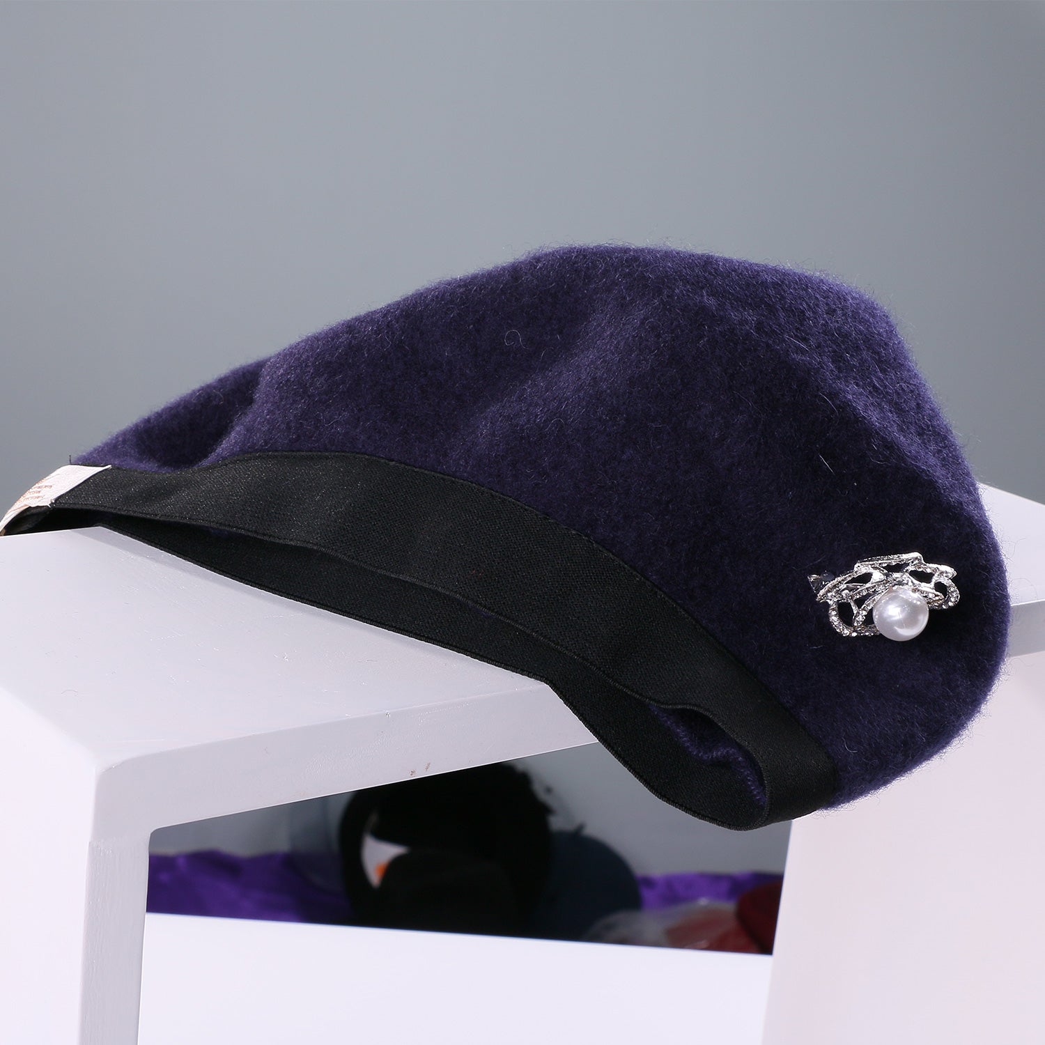Womens Classic Winter Pearl Rhinestone Flower Wool Wedding Cocktail Beret Hats