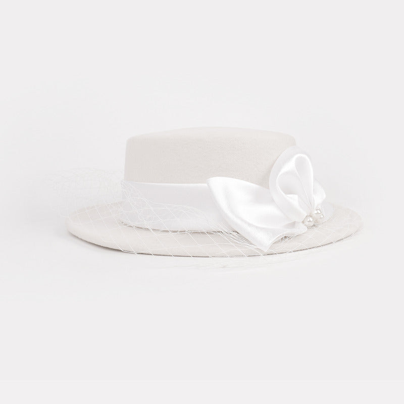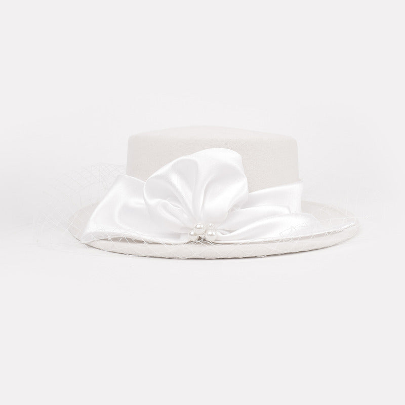 Women’s Elegant Winter Ribbons Veil Wool Special Occasion Boater