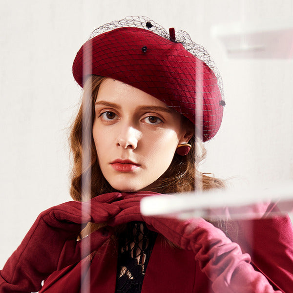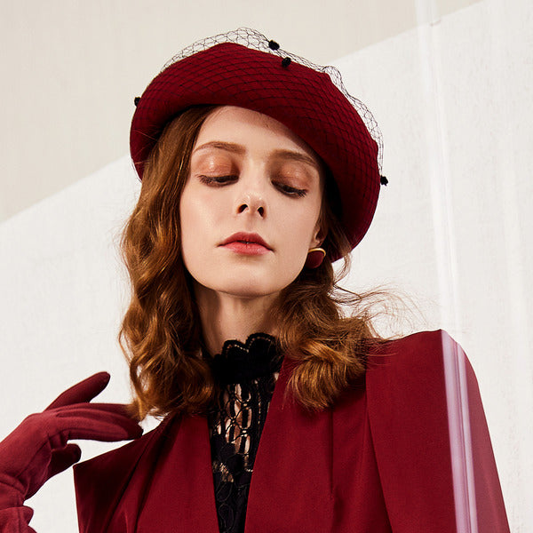 Womens Elegant Winter Veil Wool Wedding Cocktail Beret Hats