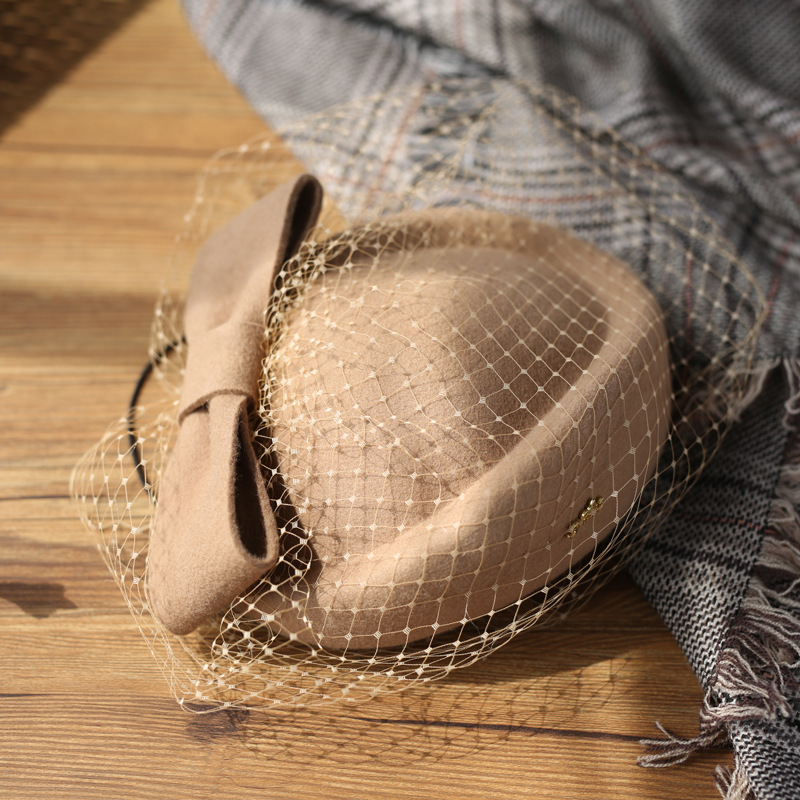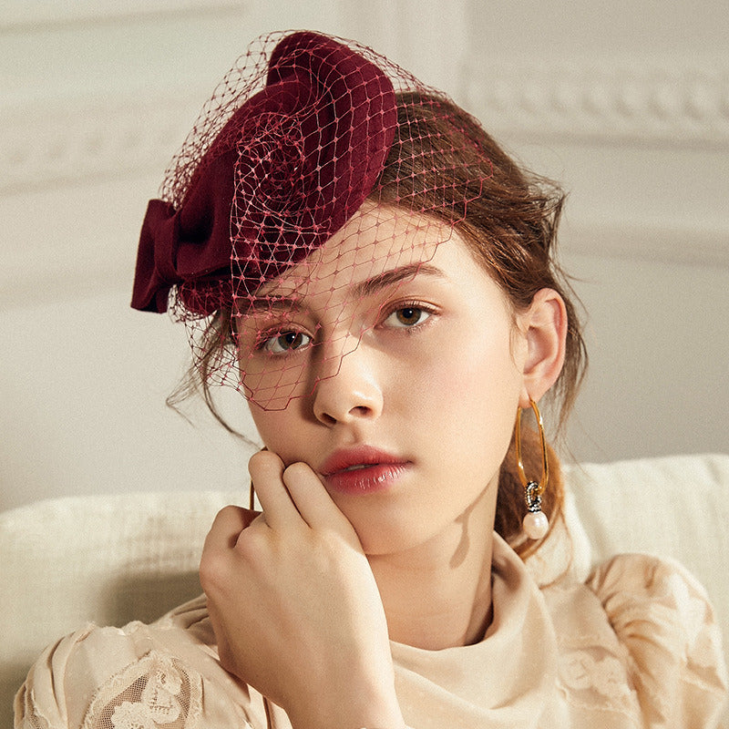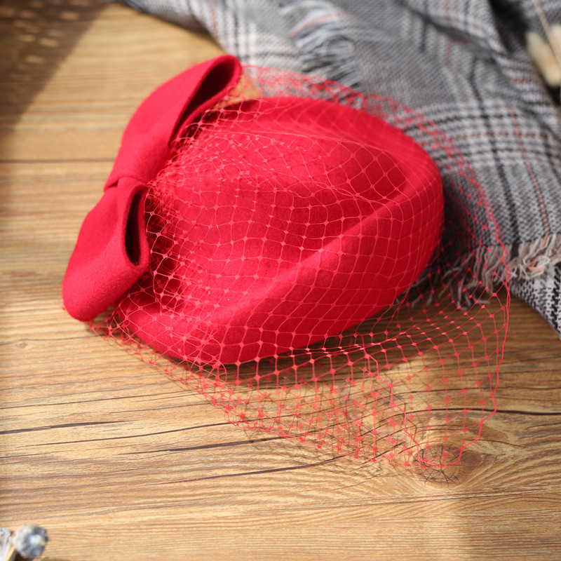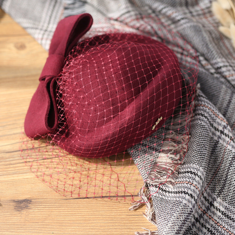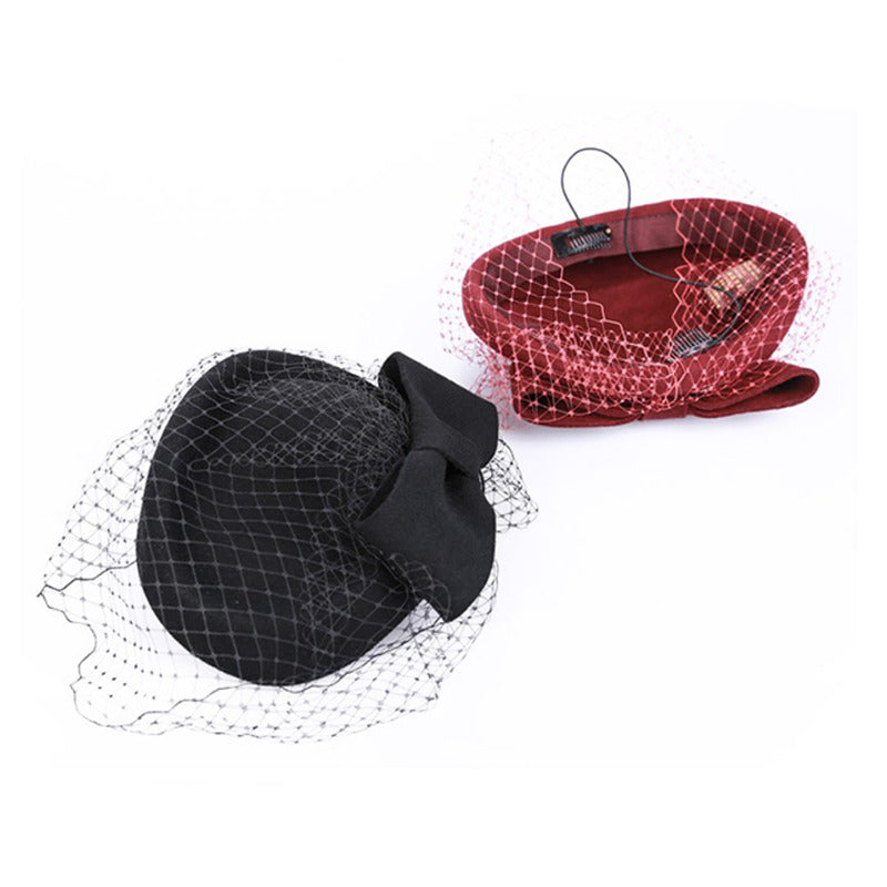 Women’s Elegant Winter Wool Bow Veil Cocktail Wedding Guest Pillbox Hats With Comb