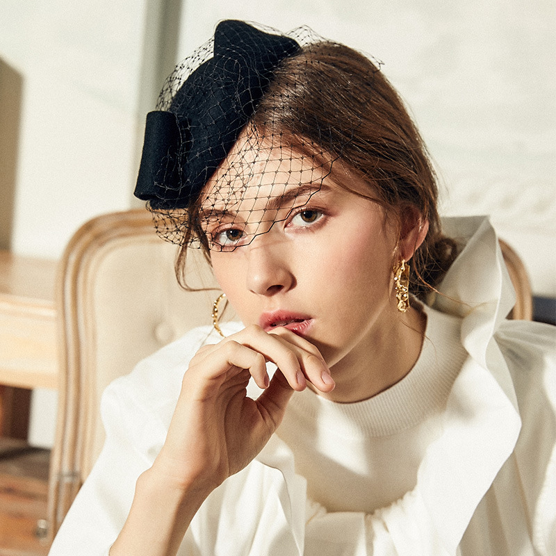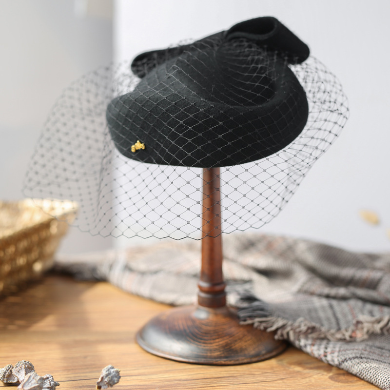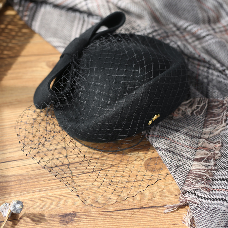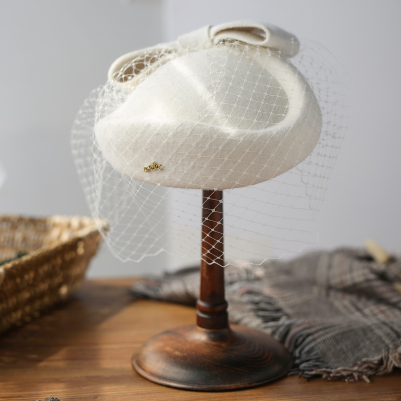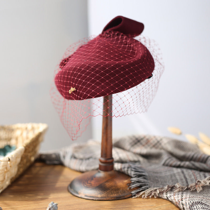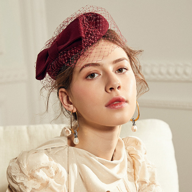 Women’s Elegant Winter Wool Bow Veil Cocktail Wedding Guest Pillbox Hats With Comb