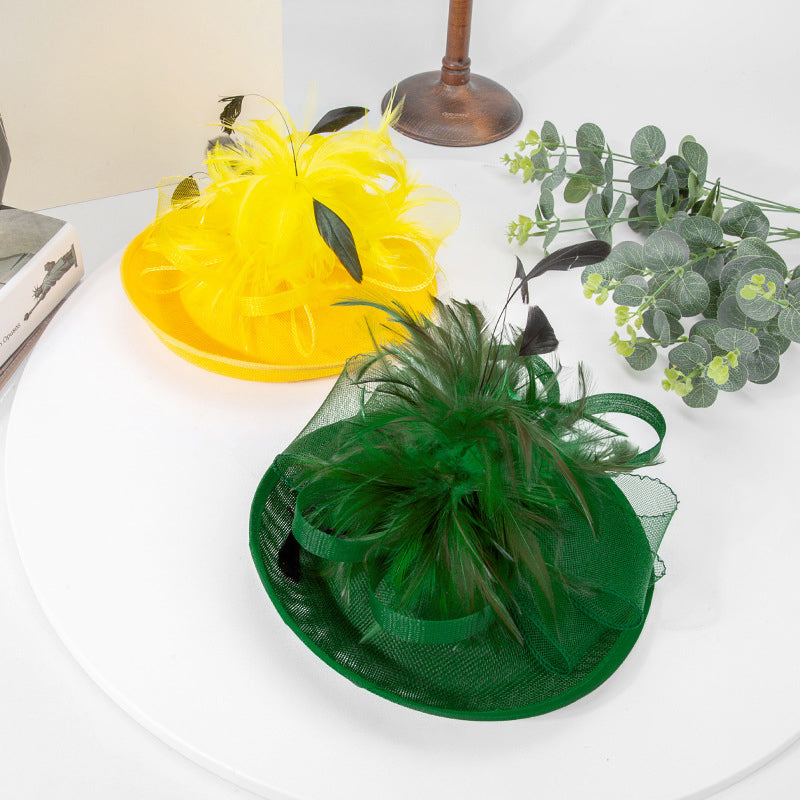 These stunning fascinators are a perfect addition to any formal event. With a bright yellow or solid green synthetic mesh/tulle base, accented by black feathers, they exude elegance and style. The adjustable headband ensures a comfortable fit for most head sizes.