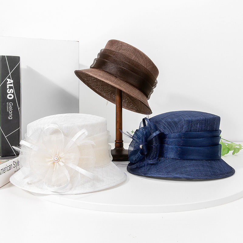 Women’s Faux Feather Flower Pearl Sinamay Kentucky Derby Church Hats