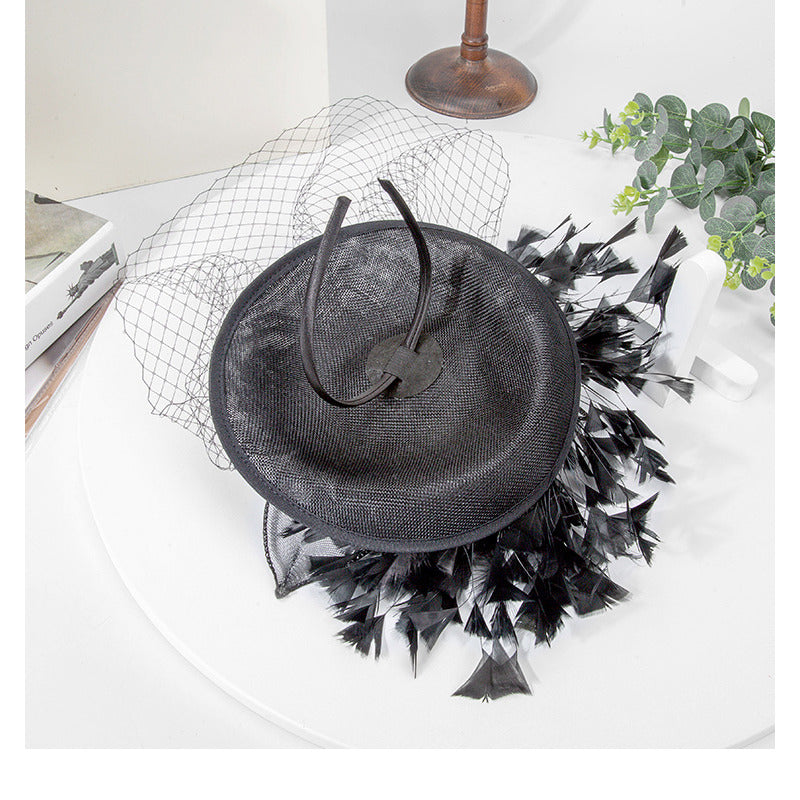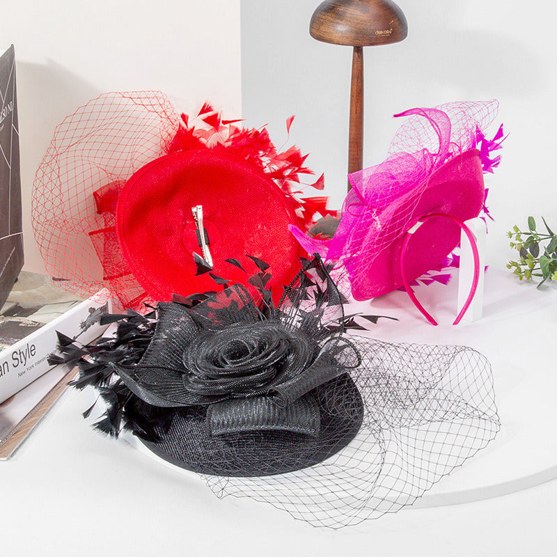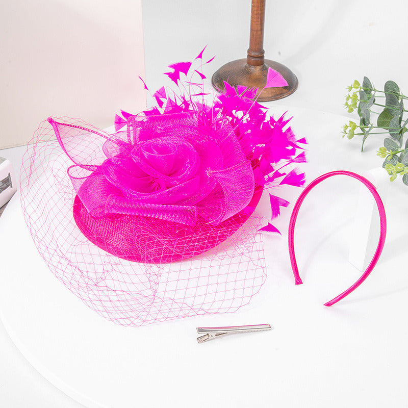 Women’s Faux Feather Veil Faux Sinamay Kentucky Derby Saucer Hats Fascinators With Clip Headband