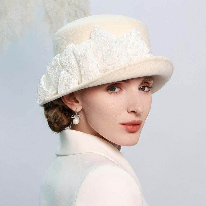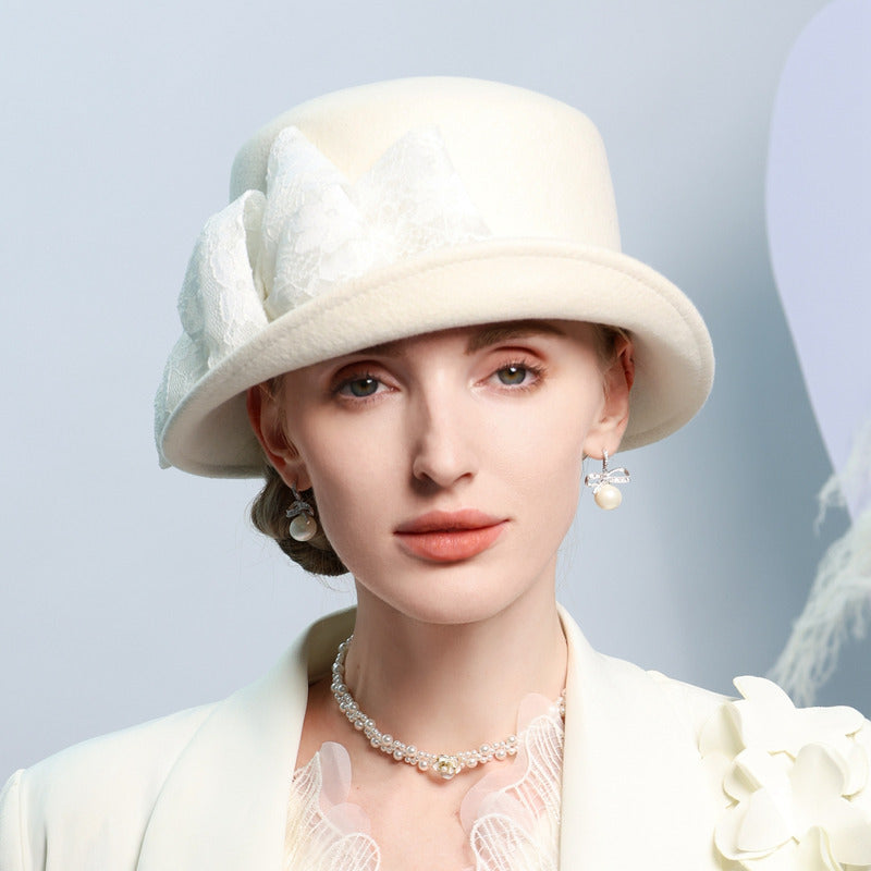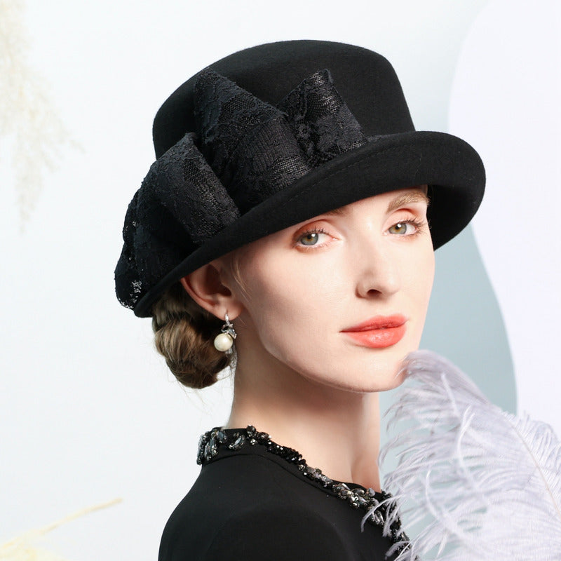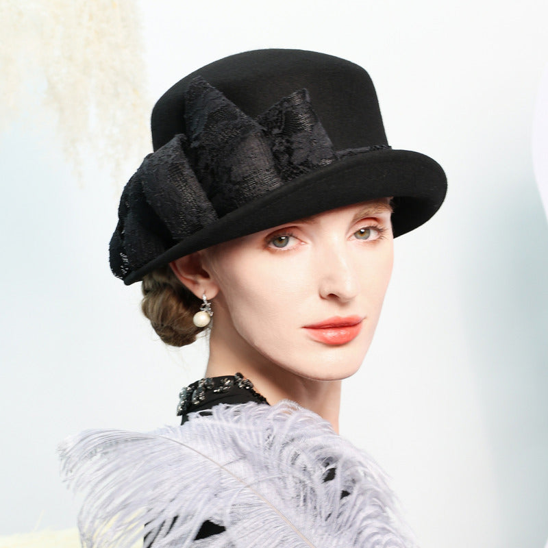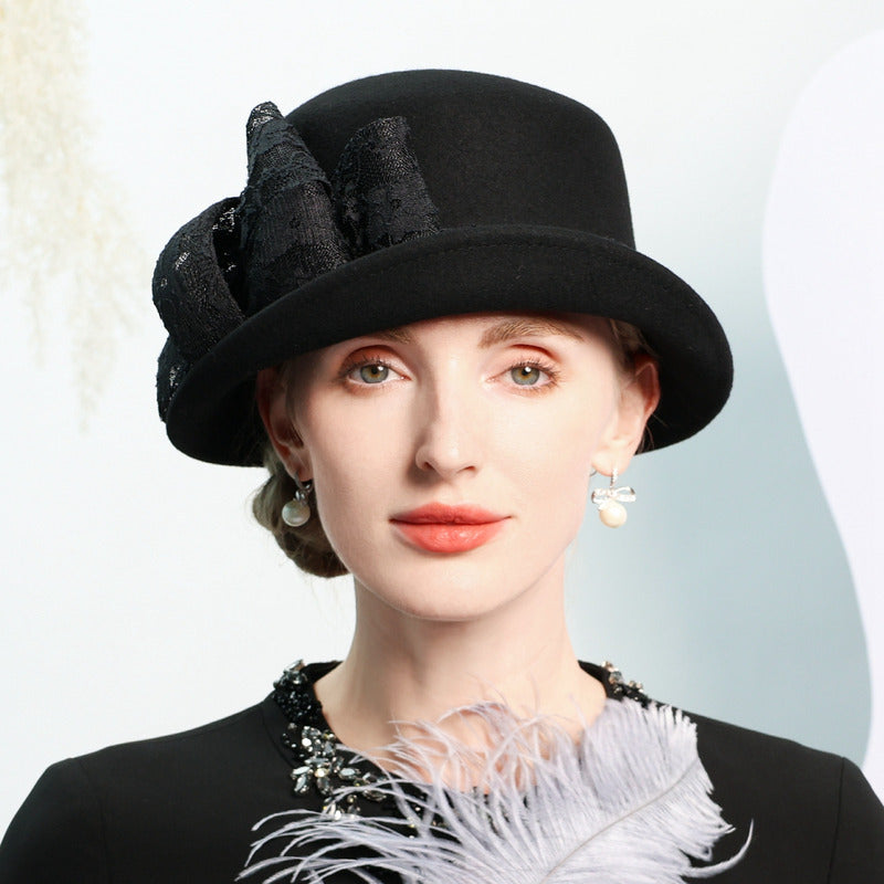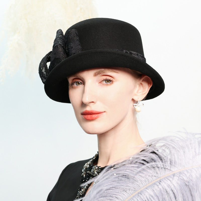 This Bowler Hat offers a combination of classic style and high – quality craftsmanship. The wool felt material ensures durability, while the lace embellishment adds a unique, elegant touch. It is versatile enough to be worn year – round for various formal occasions.