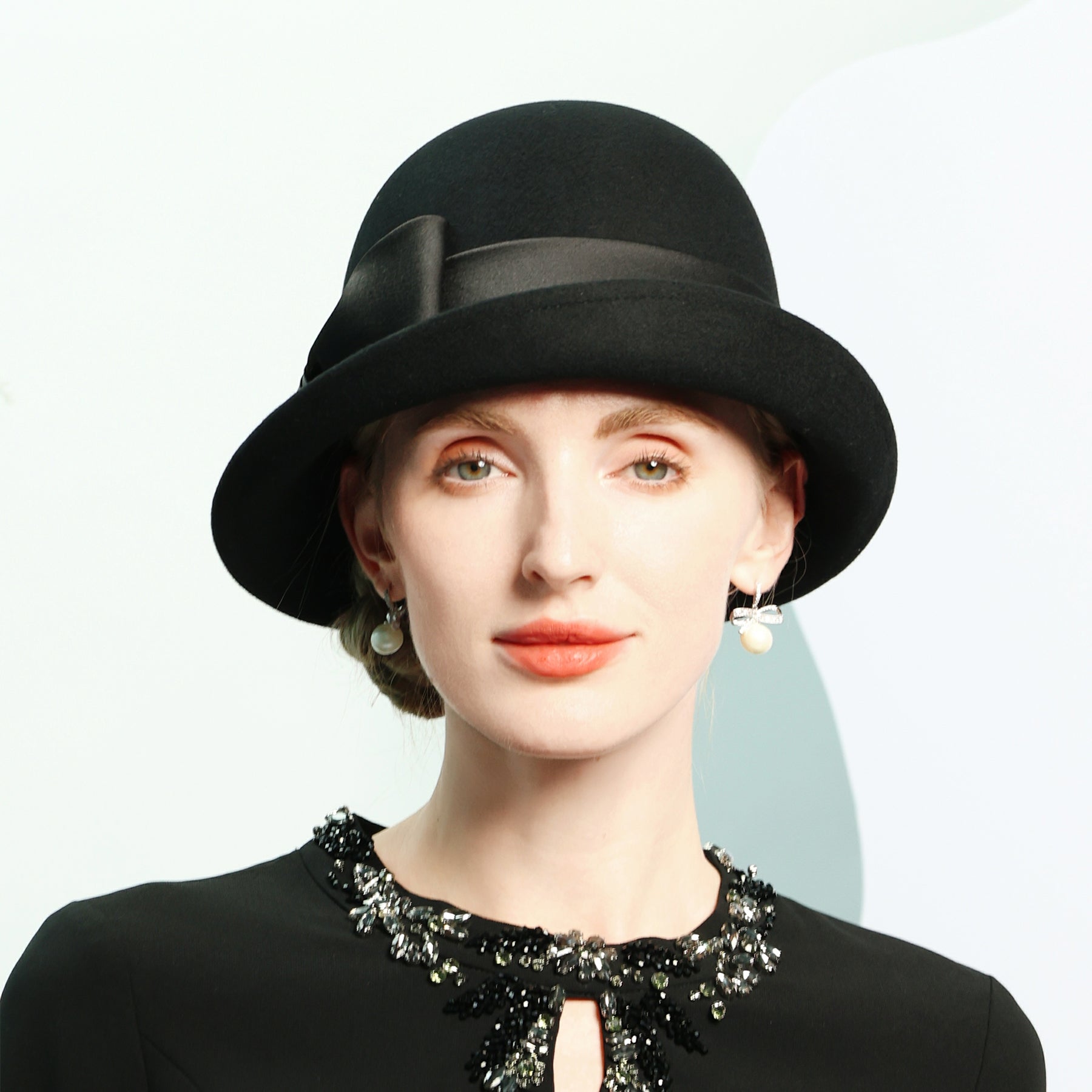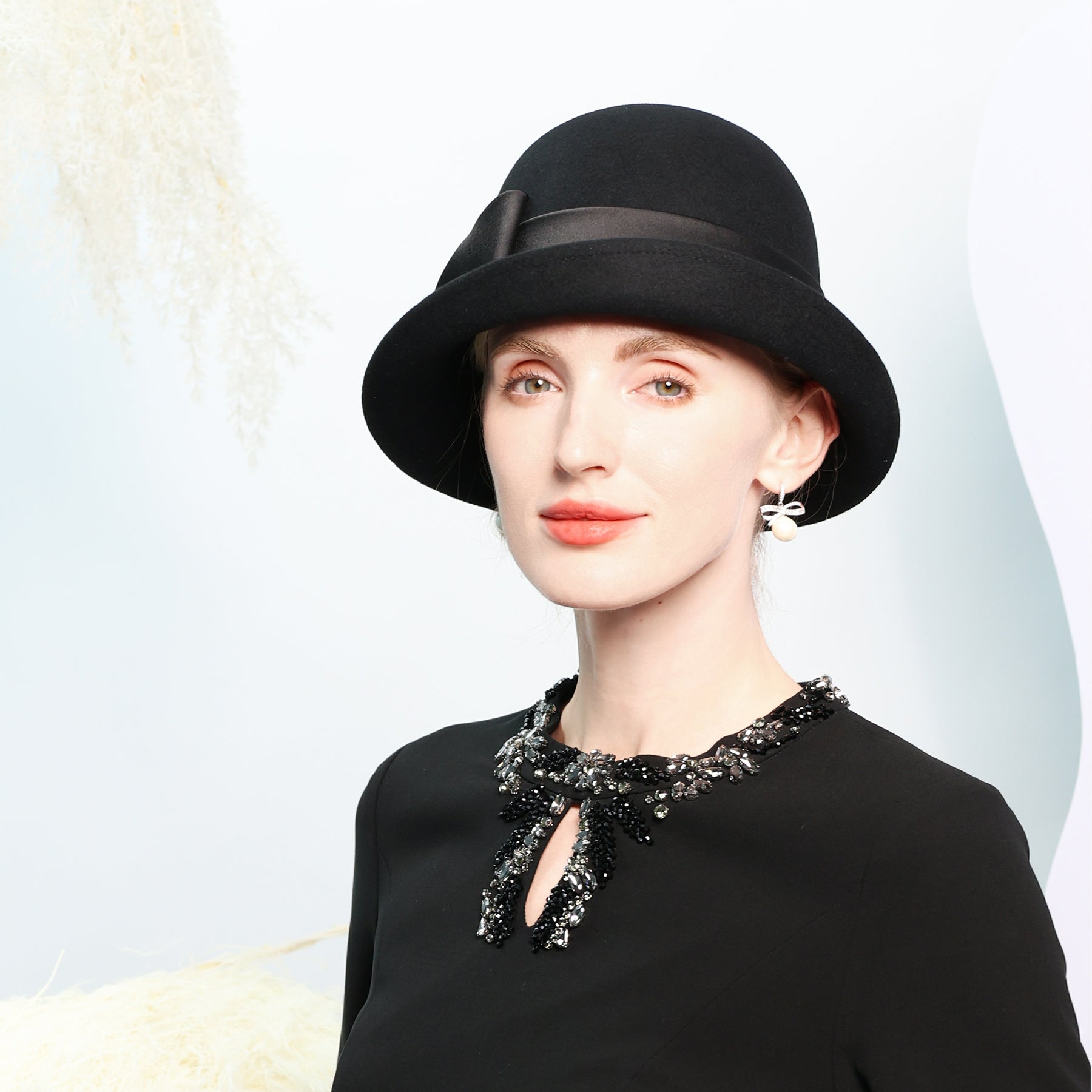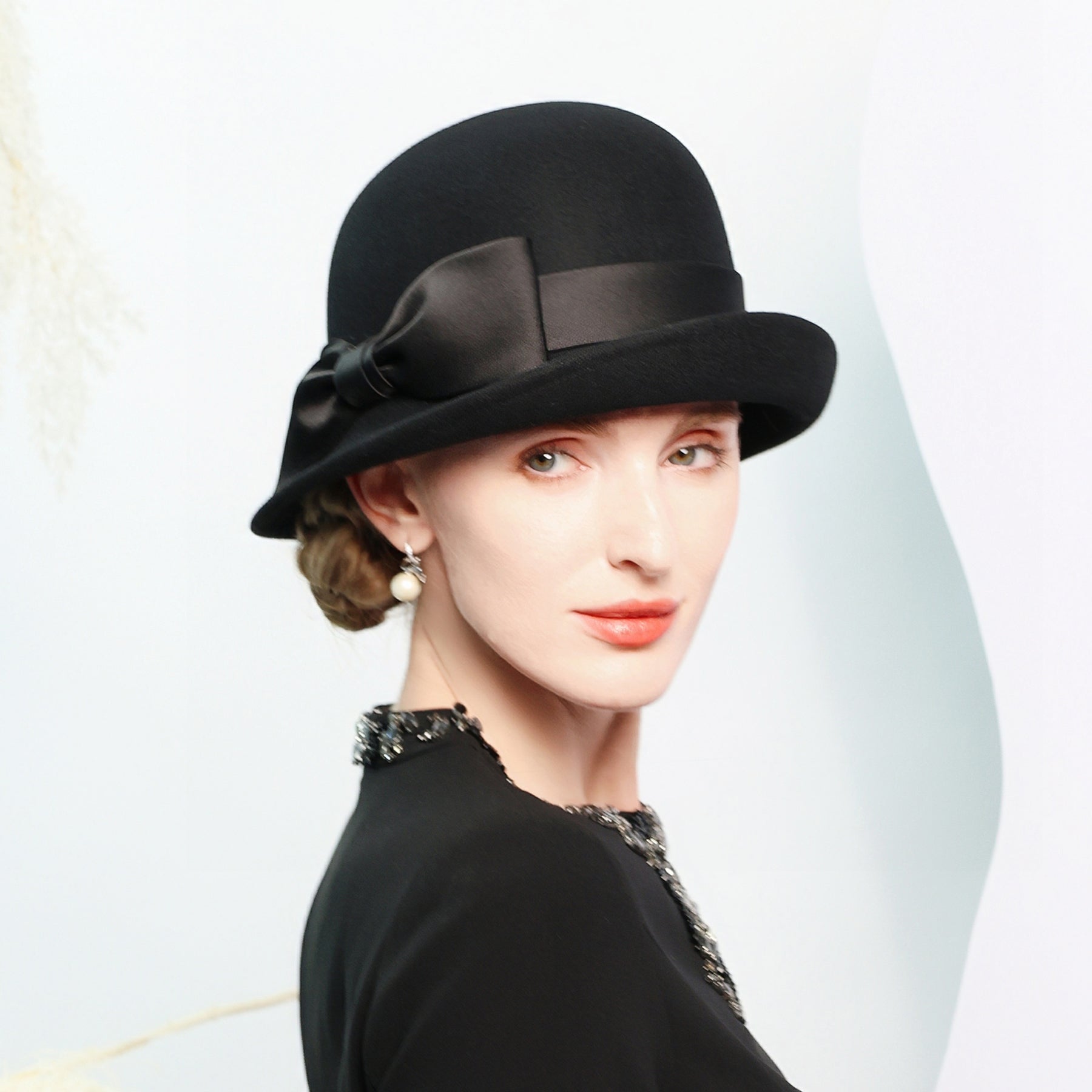 Women’s Flip Brim Winter Bowknot Wool Special Occasion Cloche Hats