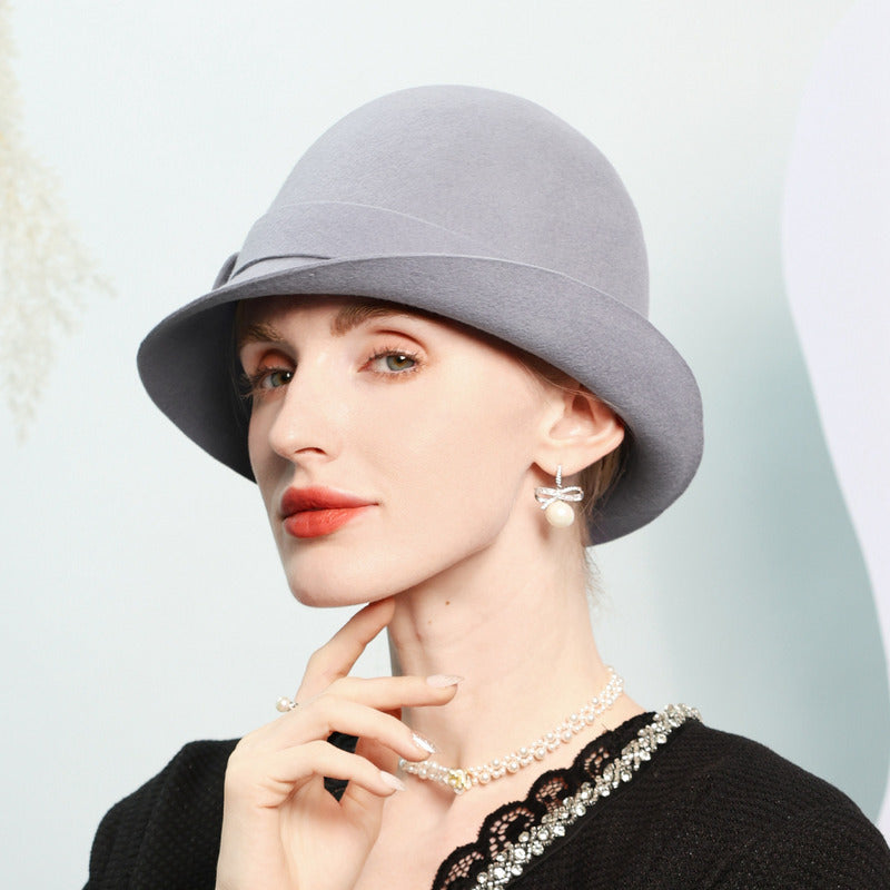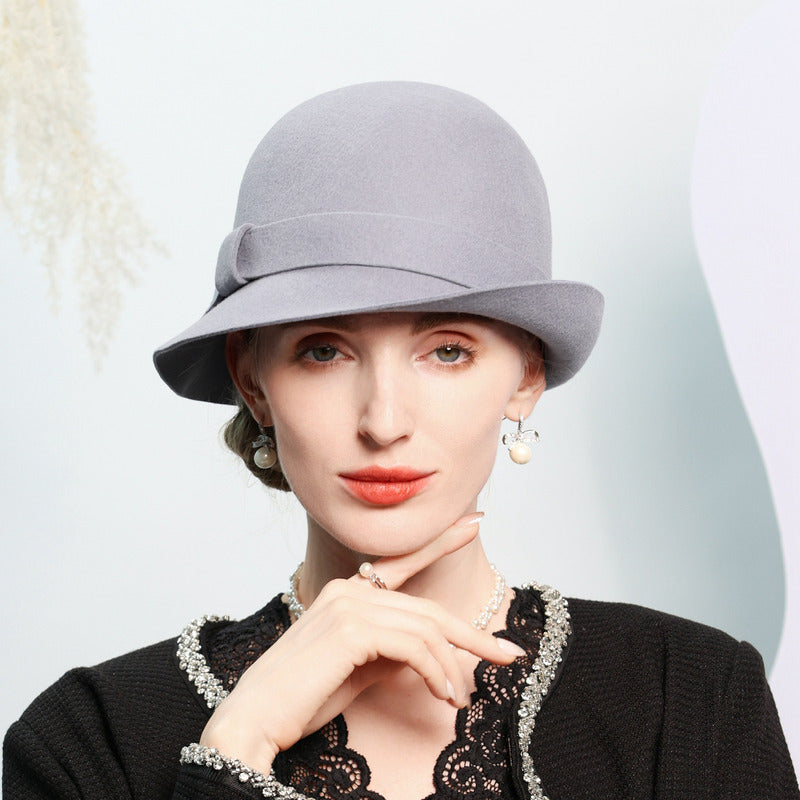 Step into the world of vintage elegance with this stunning cloche hat. Crafted from high – quality wool felt, it showcases a solid pale lavender/light blue – gray color. The front is adorned with a matching bow, adding a refined and classic touch, perfect for formal and vintage – themed events.