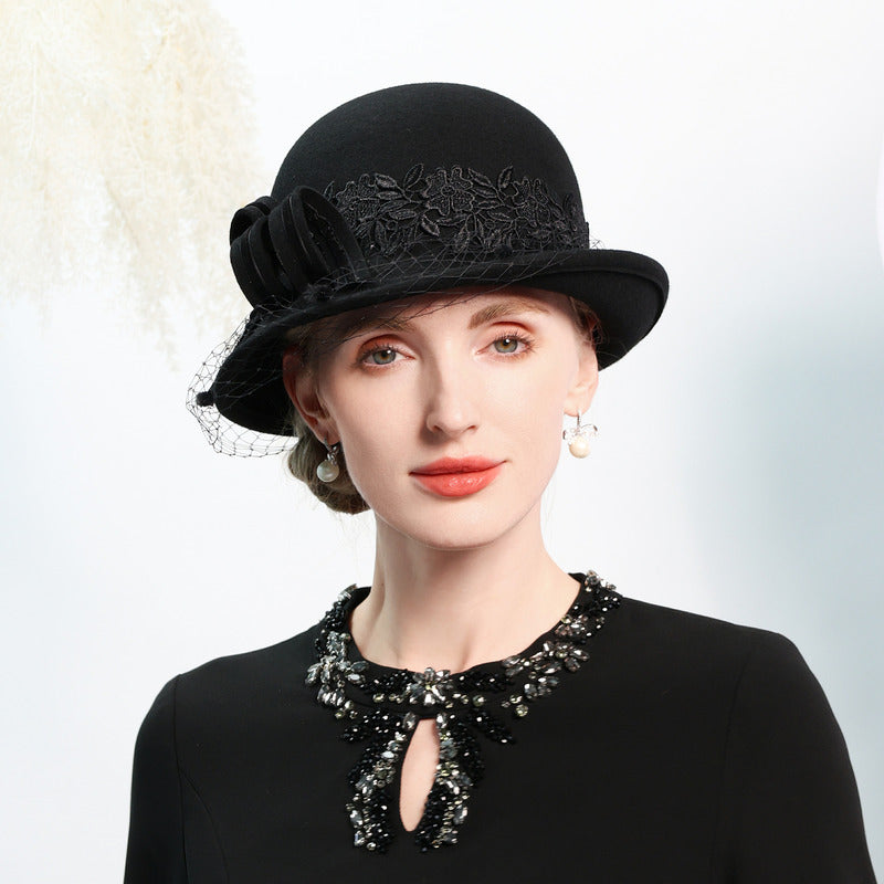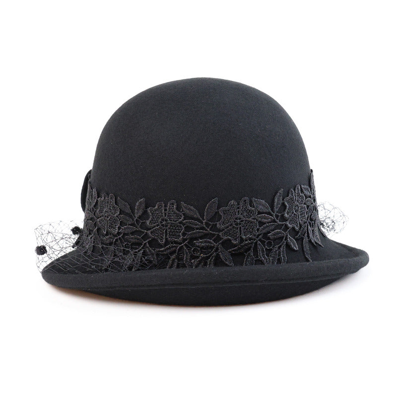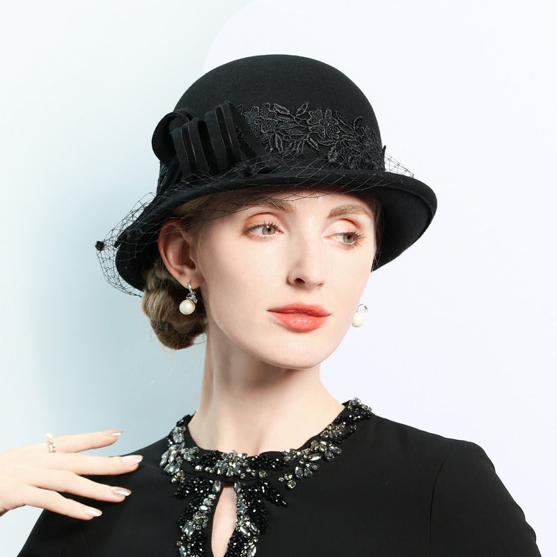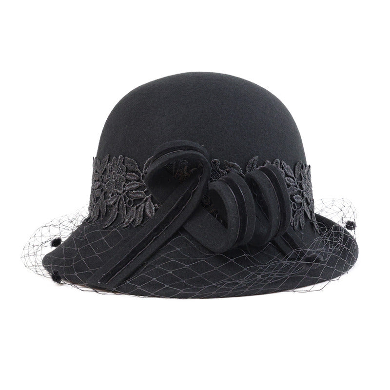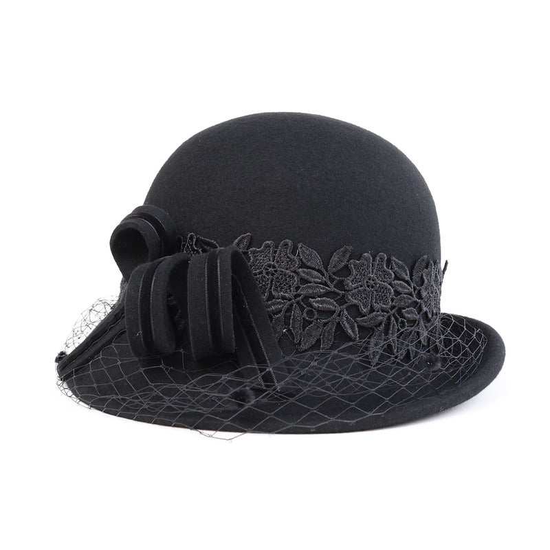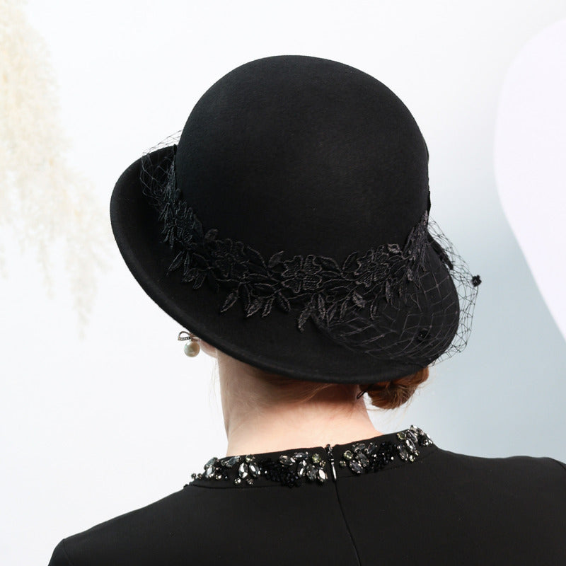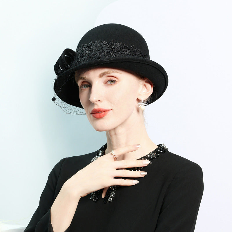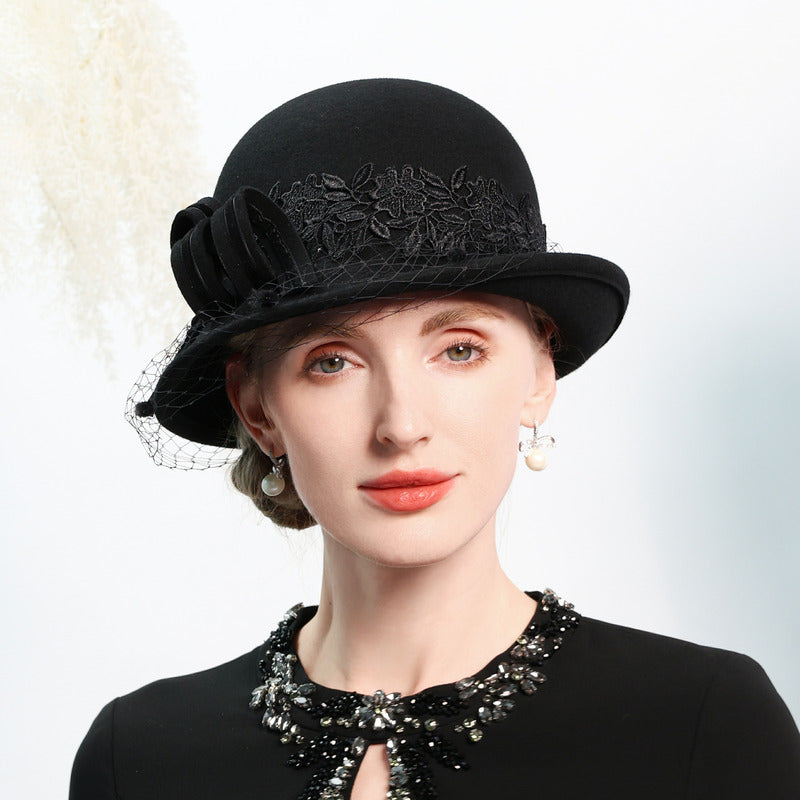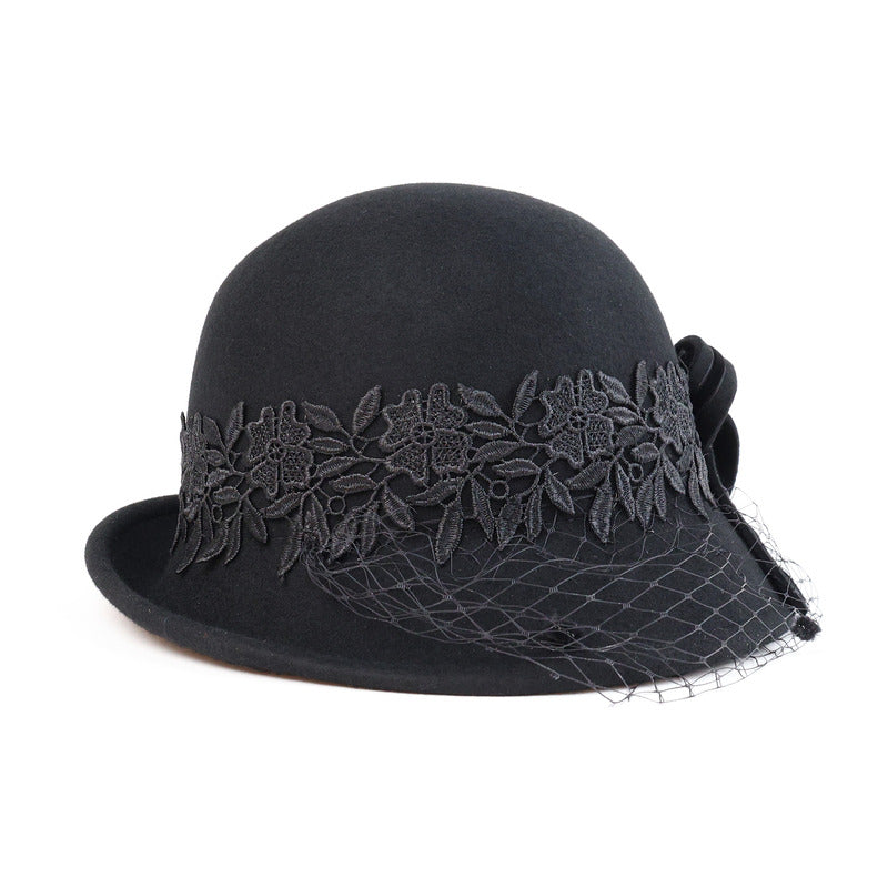 This hat offers a perfect blend of vintage charm and classic elegance. The high-quality wool felt construction ensures durability and warmth, while the delicate lace and veil add a feminine touch. It is a versatile accessory suitable for various formal occasions.