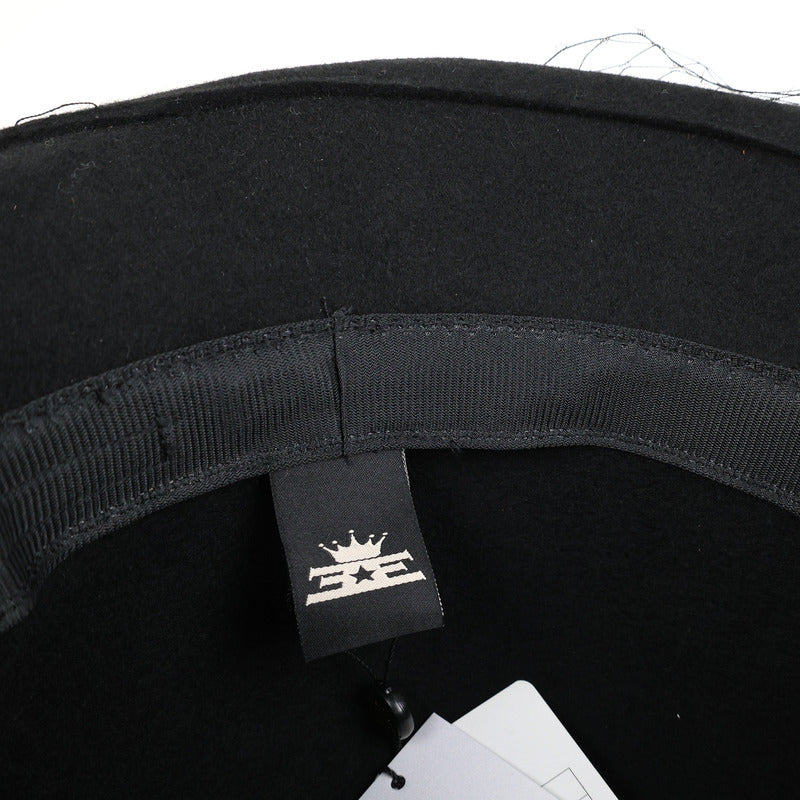- Material: Wool felt, Floral lace, Black tulle/netting, Black ribbon
