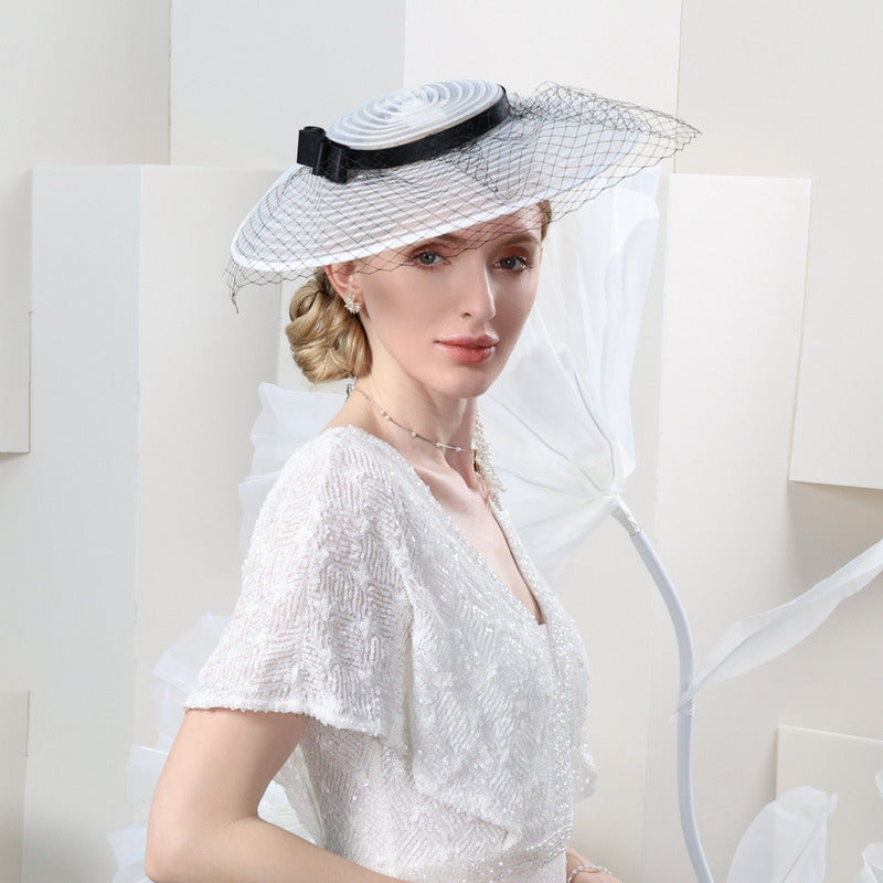 Women’s Glamourous Bow Veil Horse Hair Fabric Wedding Guest Horse Racing Saucer Hats Fascinators With Headband
