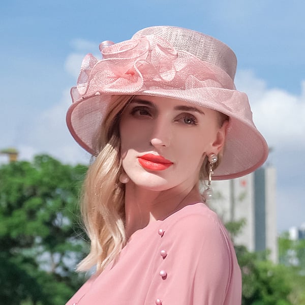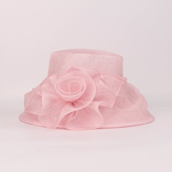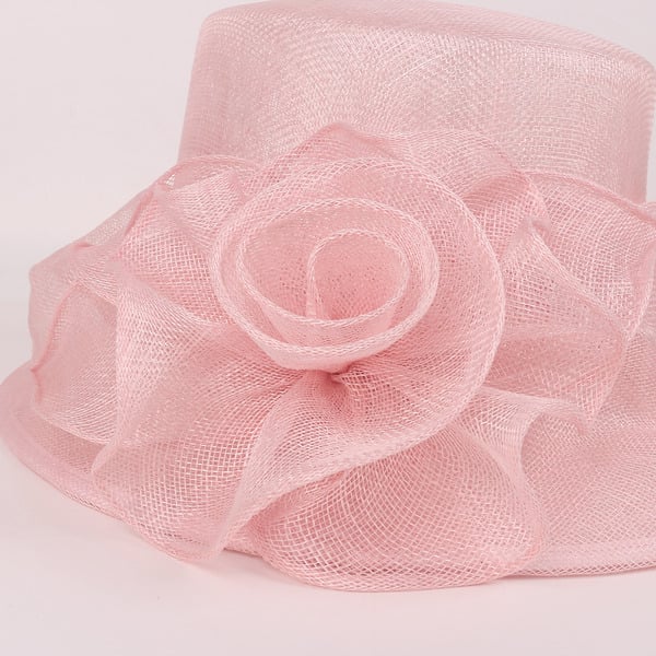 Discover this charming sun hat crafted for the summer season. It features a light pastel pink nylon mesh construction, offering excellent breathability. The pre-curved wide brim is trimmed with a smooth, lightweight polyester fabric in the same pastel pink shade, creating a cohesive and stylish look.