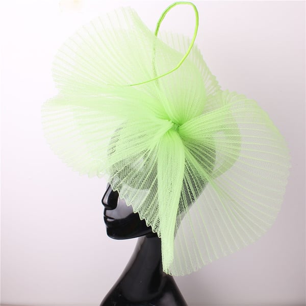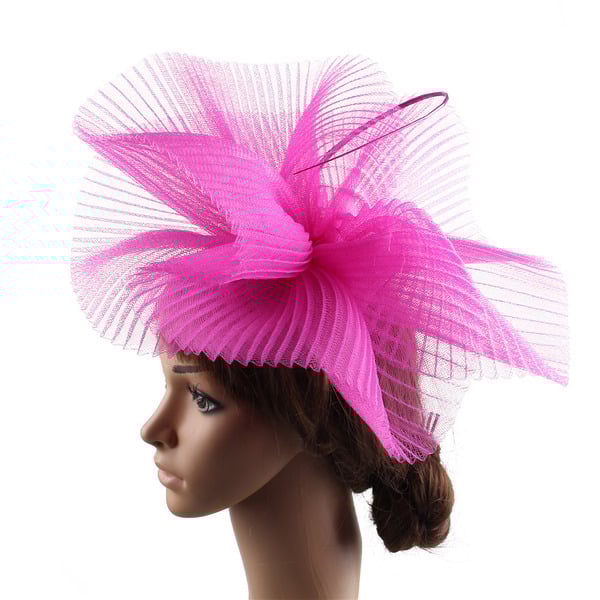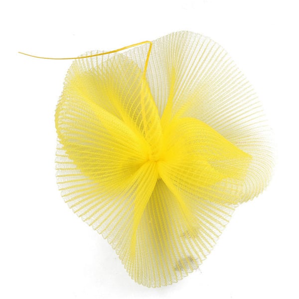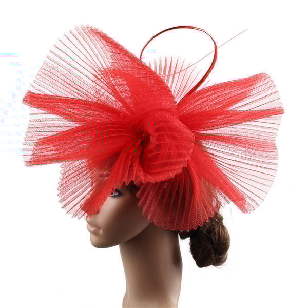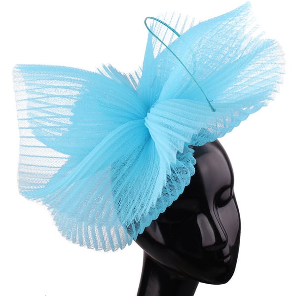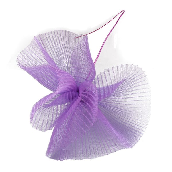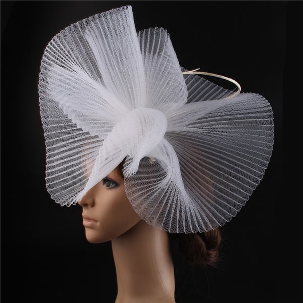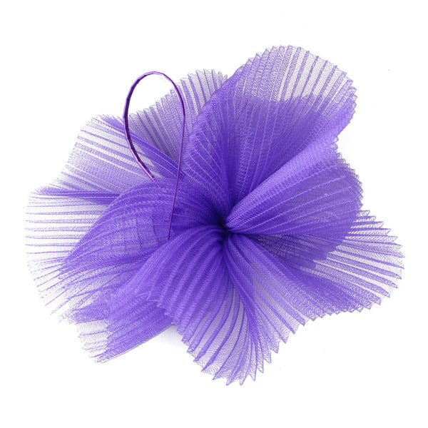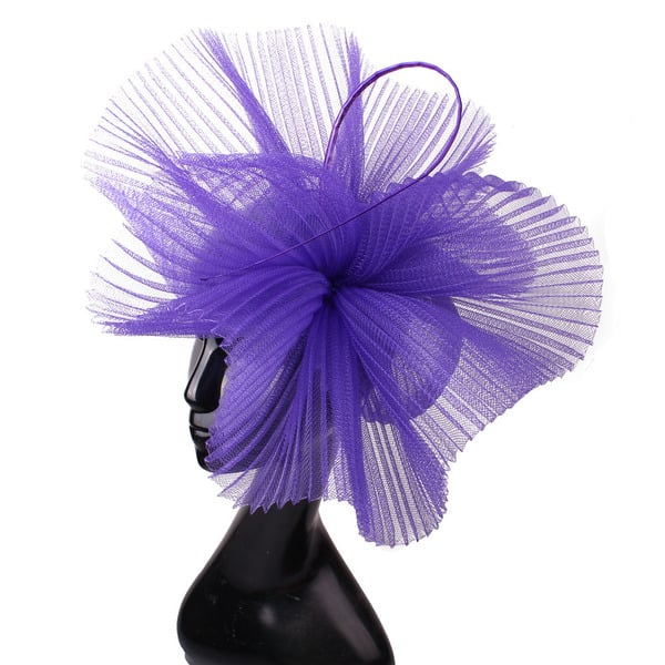 This elegant fascinator is a perfect choice for formal occasions. Crafted from pleated tulle, it features a large, pleated, flower-like appliqué on a wire hoop base. The solid cream/ivory color gives it a sophisticated and monochromatic look.