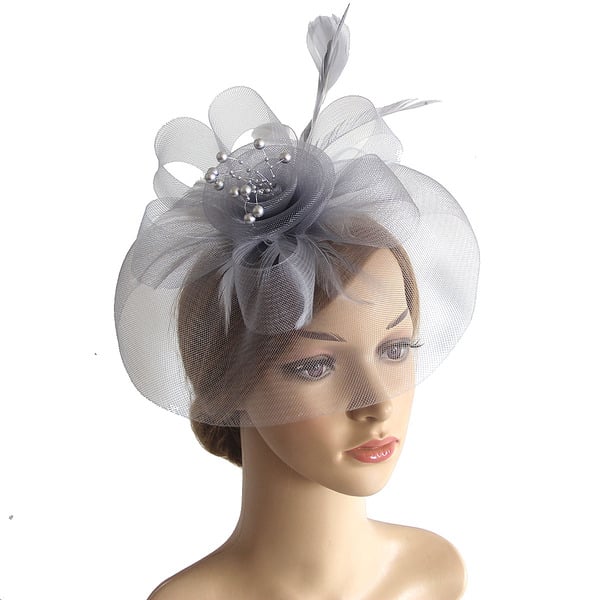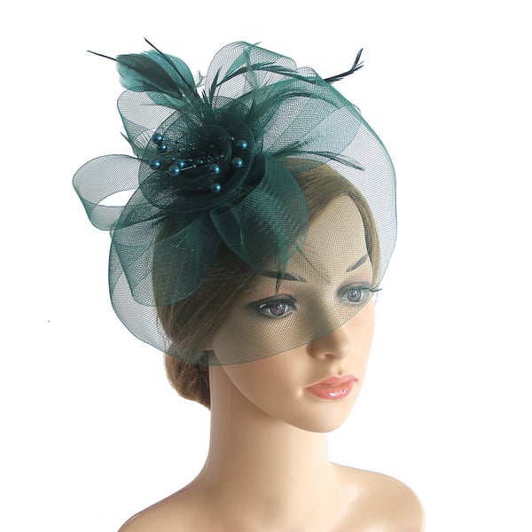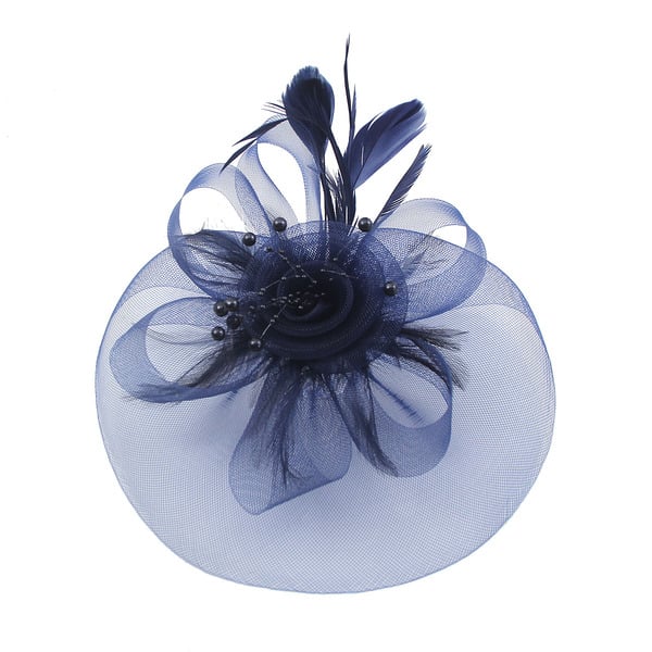 Women’s Mesh With Faux Feather Flower Kentucky Derby Fascinators With Clip Headband – Dark Navy