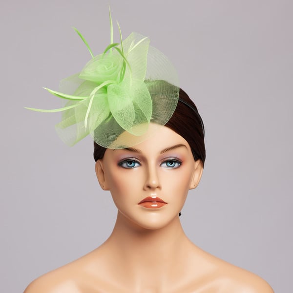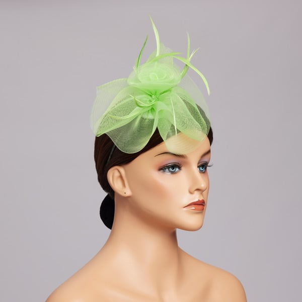Women’s Mesh With Faux Feather Flower Kentucky Derby Fascinators With Clip – light green