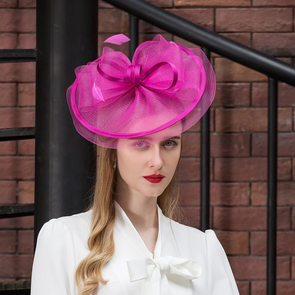 Women’s Mesh With Faux Feather Kentucky Derby Saucer Hats Fascinators With Headband