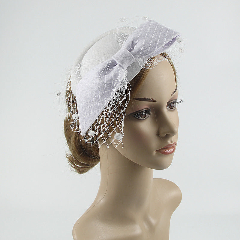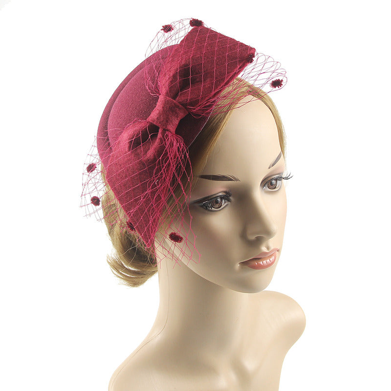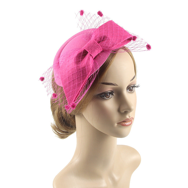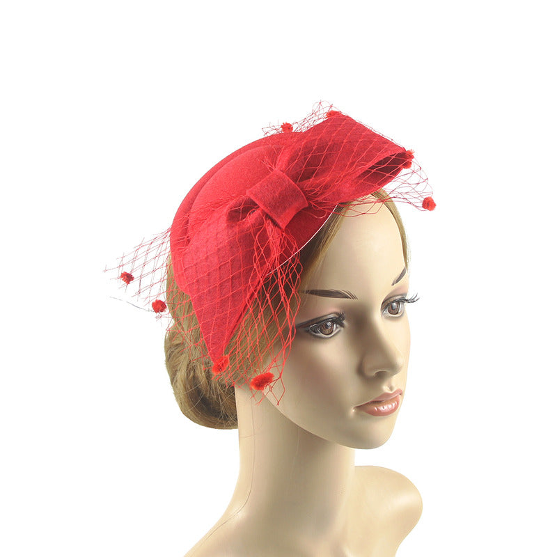 Introducing a classic black fascinator, a timeless and elegant headpiece perfect for formal events. Crafted from high – quality wool felt, it features a large structured bow on the front and black nylon netting adorned with small pom – poms, adding a touch of vintage charm.