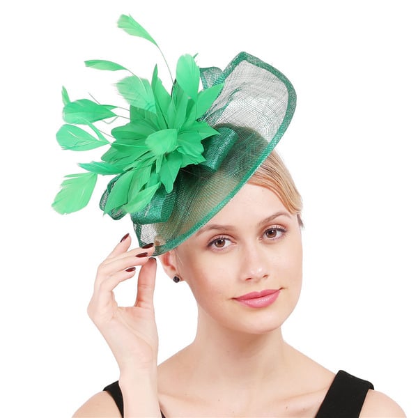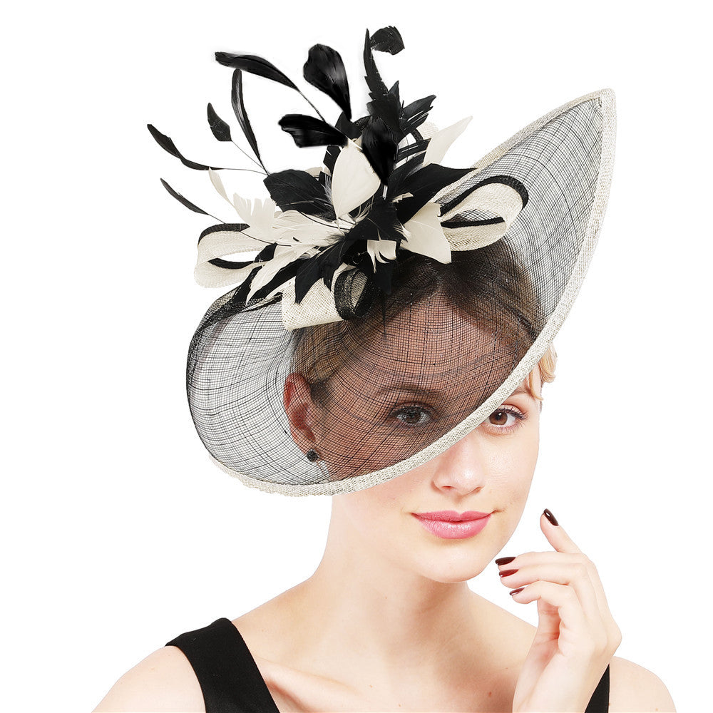 Women’s Sinamay With Faux Feather Kentucky Derby Saucer Hats Fascinators With Clip – black