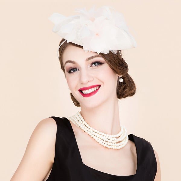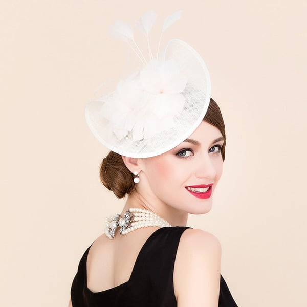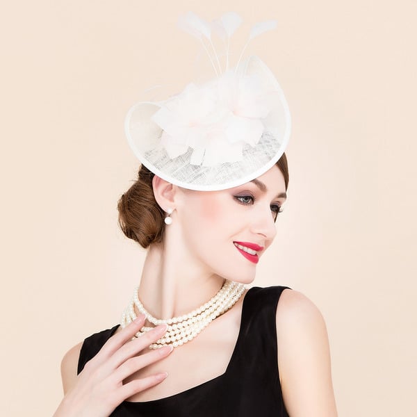 Women’s Sinamay With Faux Feather Kentucky Derby Saucer Hats Fascinators With Headband