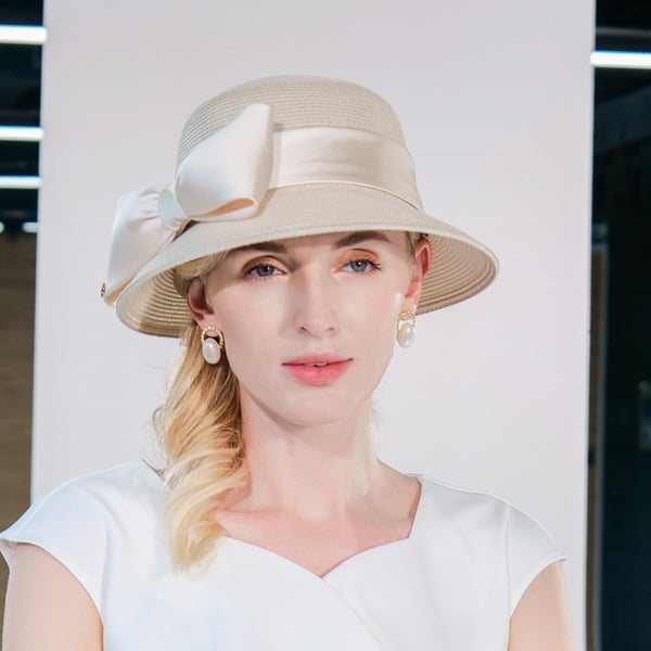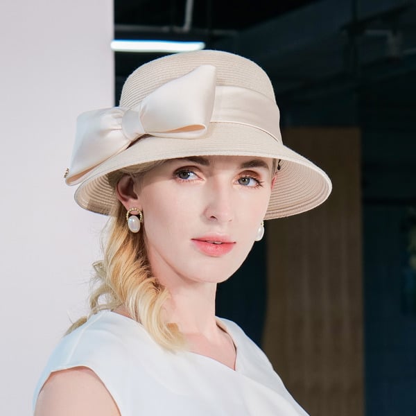 Women’s Summer Polyester With Bowknot Ribbons Kentucky Derby Church Hats Panama Hats