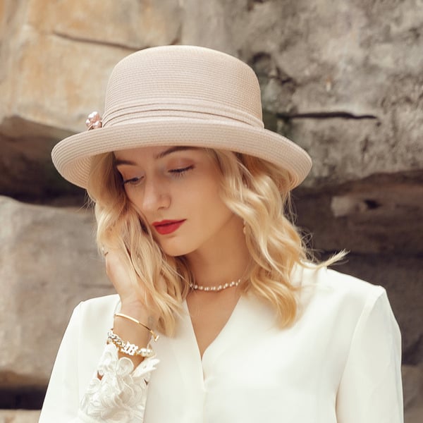 Women’s Summer Polyester With Pearl Casual Sun Hats