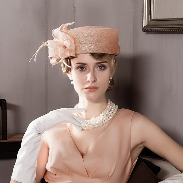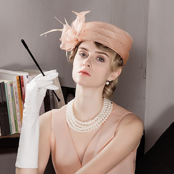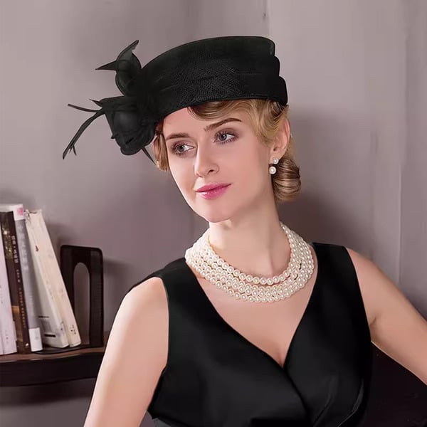 Women’s Vintage Faux Feather Flower Sinamay Wedding Kentucky Derby Pillbox Hats