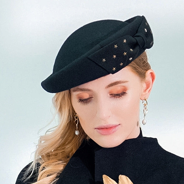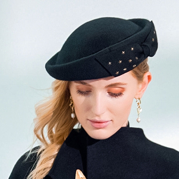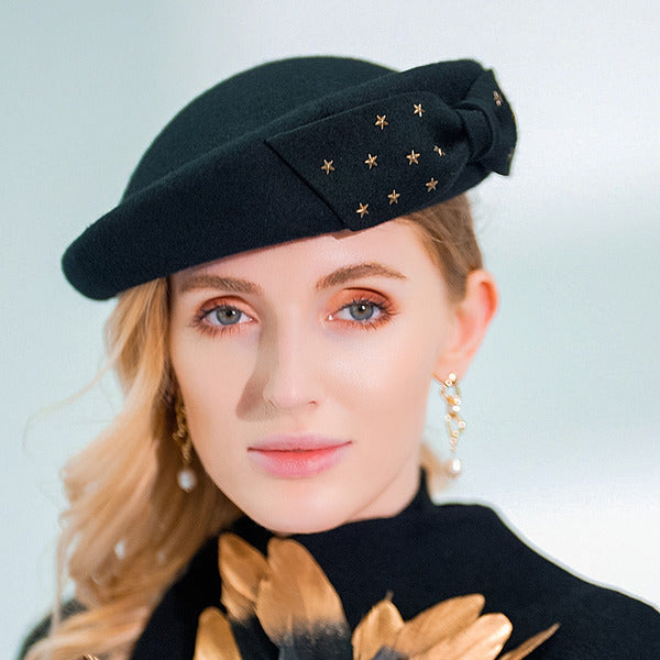 Womens Vintage Winter Rivet Star Wool Wedding Cocktail Beret Hats