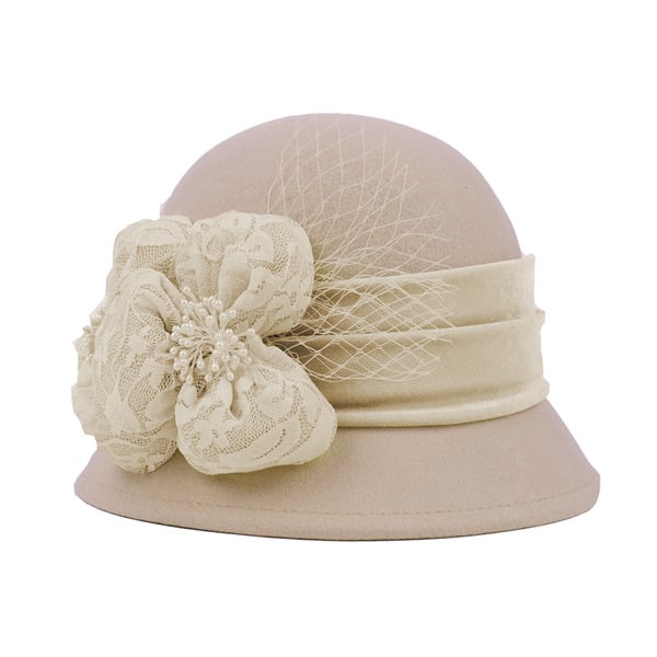 - Material: Wool (felted crown), Velvet (band), Fabric (floral accent)