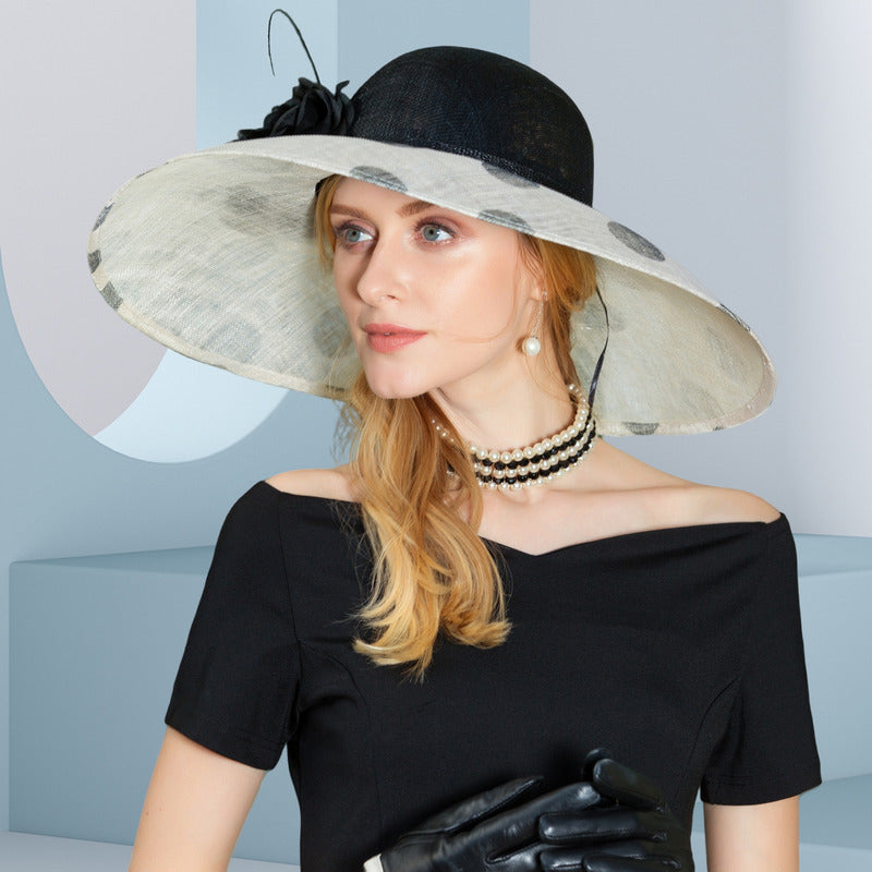 Women’s Wide Brim Flower Polka Dot Wedding Guest Sinamay Horse Racing Church Hats