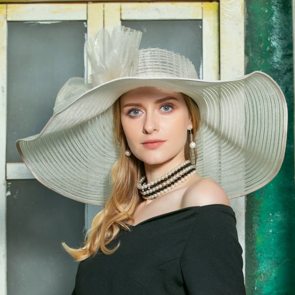 Women’s Wide Brim Mesh With Bowknot Kentucky Derby Floppy Hats Church Hats