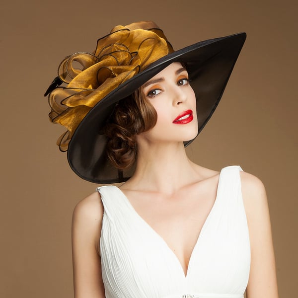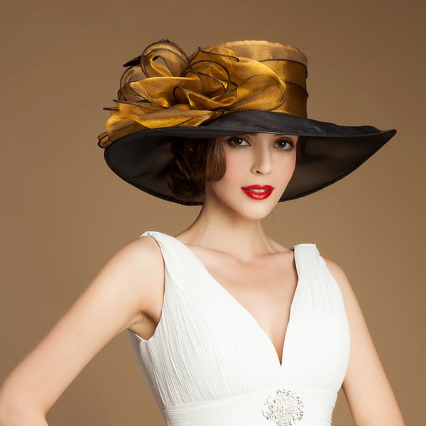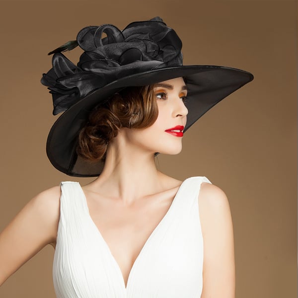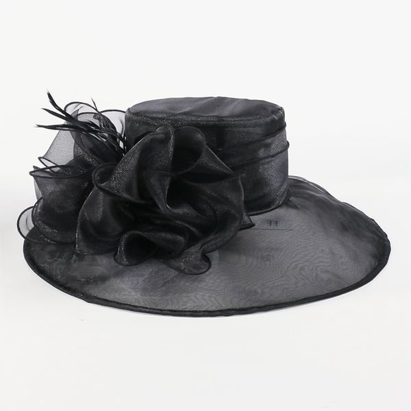 Women’s Wide Brim Organza With Bowknot Faux Feather Kentucky Derby Church Hats