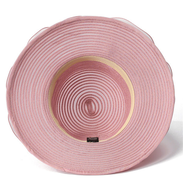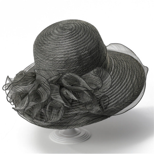- Material: Paper Straw (Crown), Sheer Organza (Brim/Embellishment)