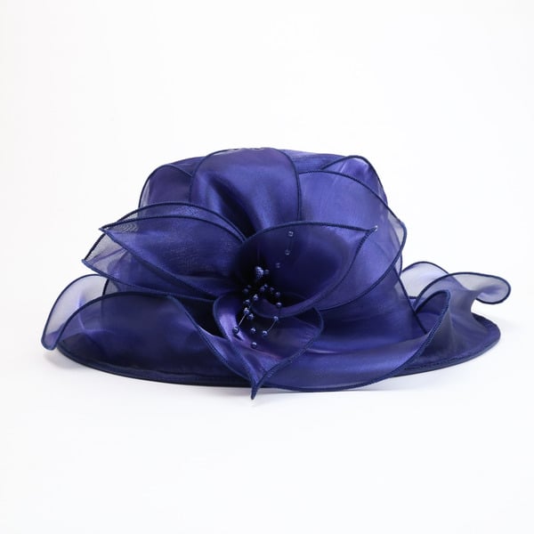 This hat offers a perfect blend of style and quality. The deep burgundy organza fabric and decorative floral embellishment make it a standout piece for formal occasions. The adjustable internal band ensures a comfortable fit, while the structured construction maintains its shape for a polished look.