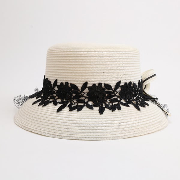 This hat offers a combination of classic style and high – quality materials. The two – tone color scheme and intricate floral lace pattern make it a unique and eye – catching accessory for formal occasions. Its adjustable fit ensures comfort, and the structured design maintains its shape for long – term use.