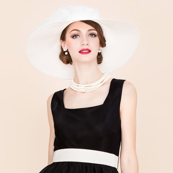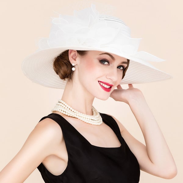 Women’s Wide Brim Polyester With Silk Flower Kentucky Derby Church Hats