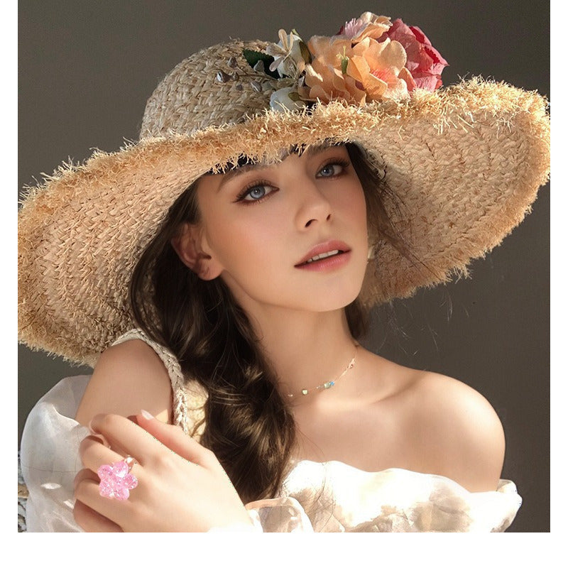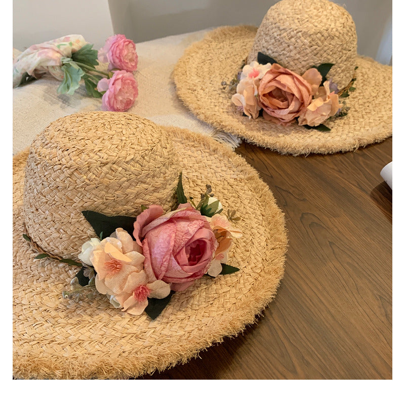 This hat combines style and functionality. The natural straw material is breathable, and the wide brim offers great sun protection. The beautiful floral embellishments make it a fashionable addition to any summer wardrobe.