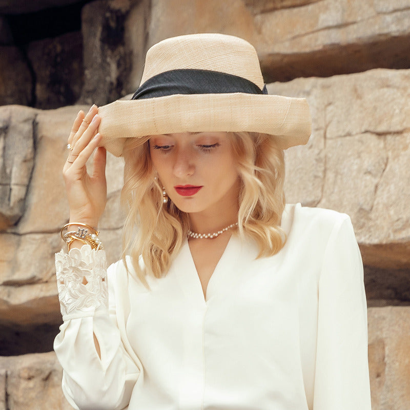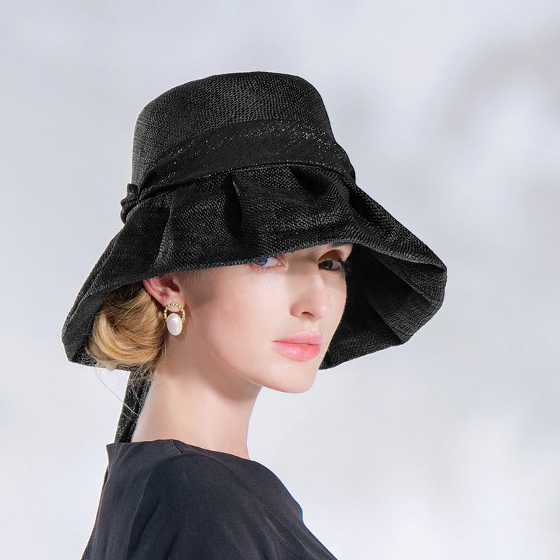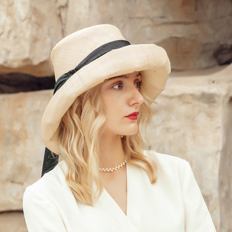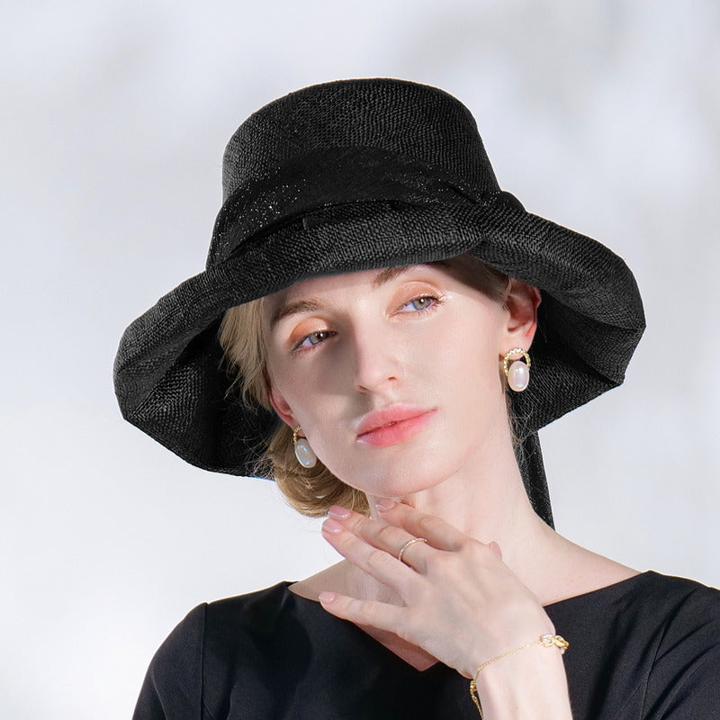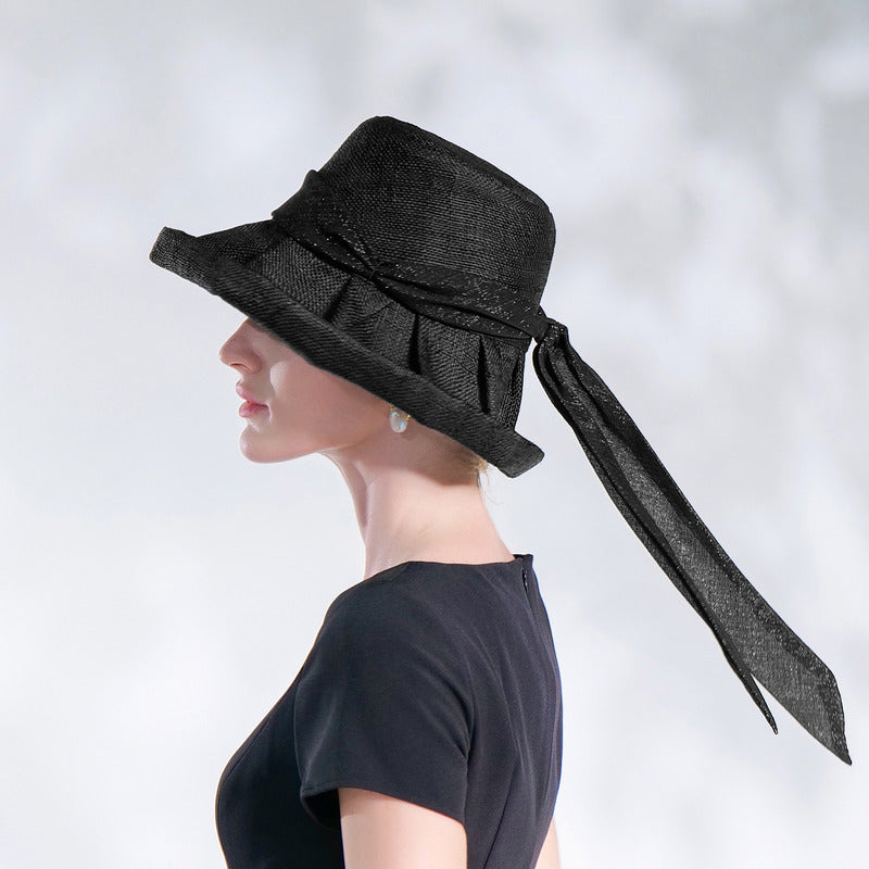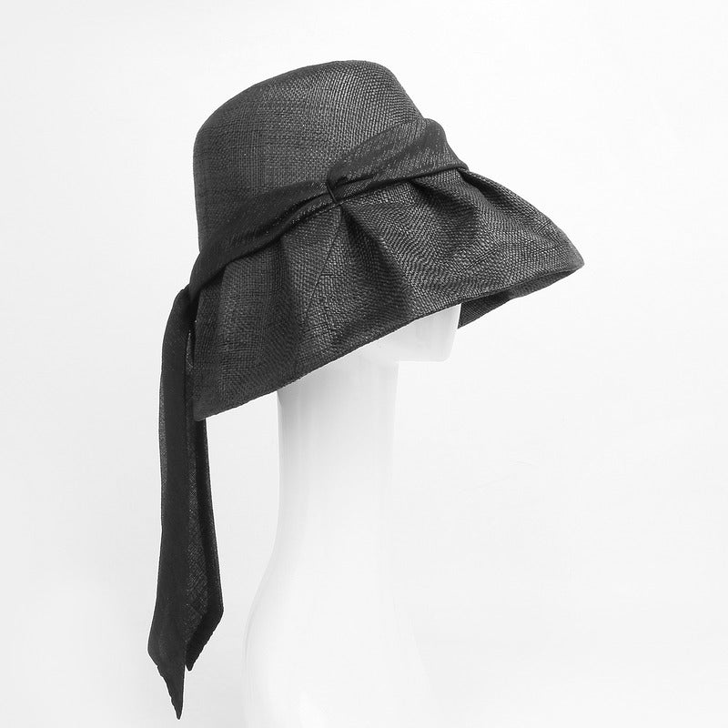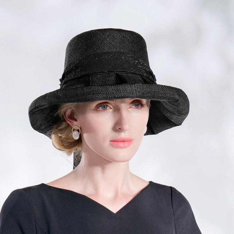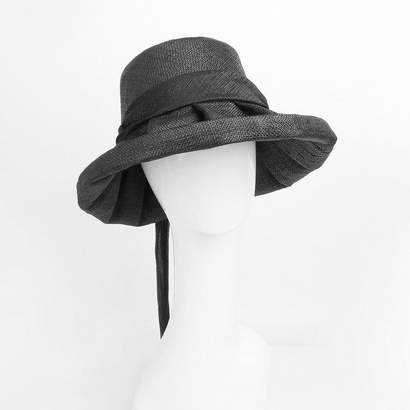| Material | Straw or linen-straw blend, black satin ribbon |